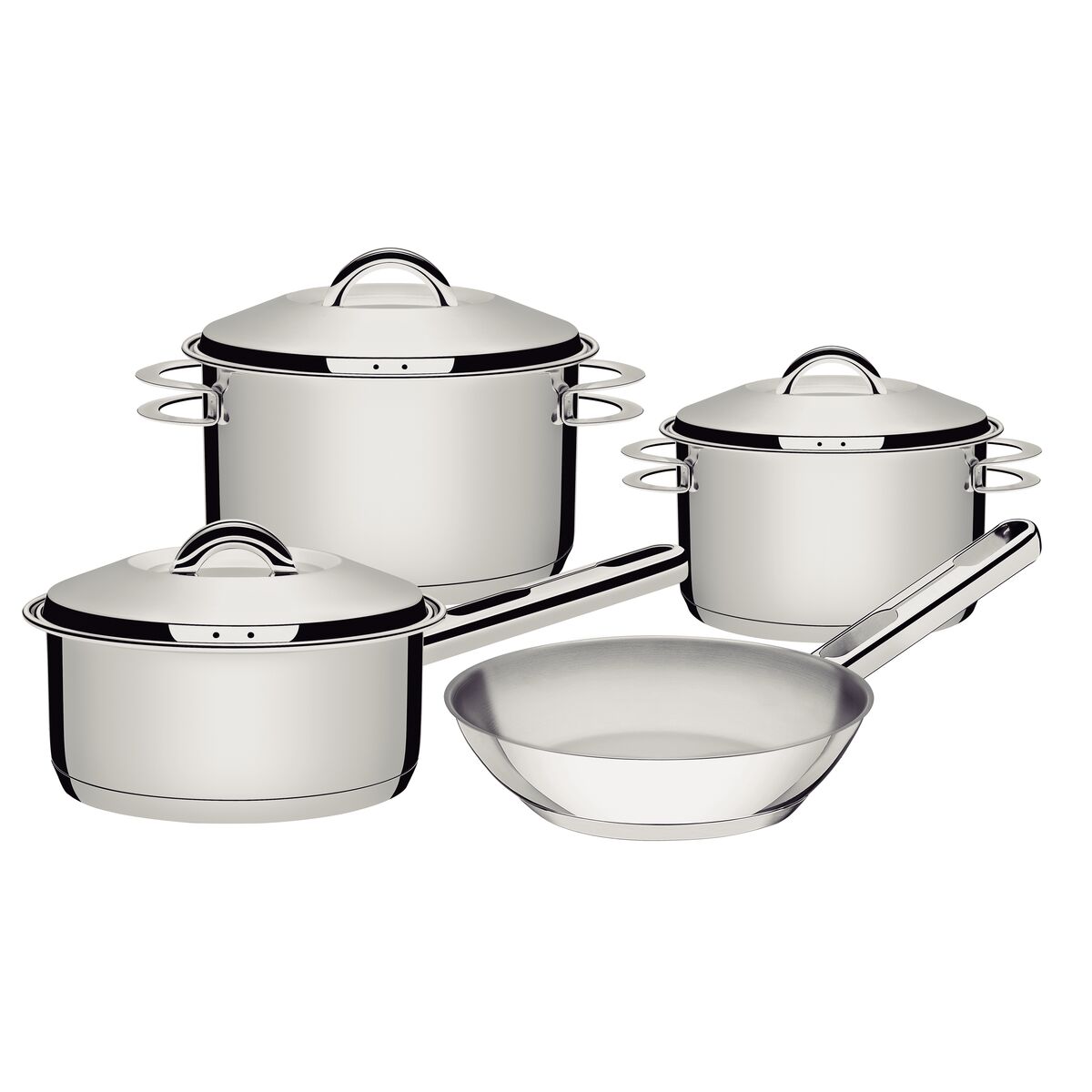 O design clean da linha Solar foi criado para tornar mais simples as tarefas de forno e fogão. O Jogo de Panelas Tramontina Solar em Aço Inox com Fundo Triplo 4 Peças possui um design moderno, com acabamento em alto brilho. O fundo triplo (aço inox + alumínio + aço inox) distribui o calor uniformemente, proporcionando um cozimento mais rápido e uniforme, economizando energia e deixando os alimentos aquecidos por mais tempo. Desenho limpo e sem cantos torna a limpeza mais fácil. Sua tampa tem saída de vapor e encaixe perfeito.