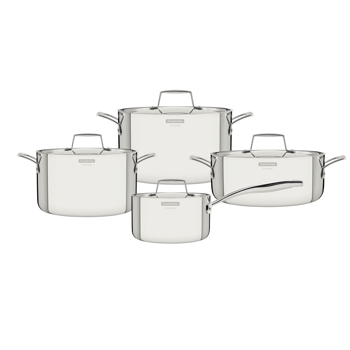 O Jogo de Panelas Tramontina Grano em Aço Inox com Corpo Triplo 4 Peças vai deixar sua experiência na cozinha ainda mais especial! Suas peças são produzidas em aço inox com corpo triplo (aço inox + alumínio + aço inox), característica que auxilia na distribuição do calor de maneira uniforme e proporciona o cozimento mais rápido e dos alimentos. Elas possuem um design moderno com acabamento em brilho e tampa com saída de vapor, que facilita e deixa o preparo dos alimentos ainda mais prático. Além disso, elas são altamente resistentes e duráveis, fáceis de limpar e podem ser levadas à máquina de lavar louças todos os dias. A escolha ideal para deixar a hora de preparar suas refeições ainda melhor!