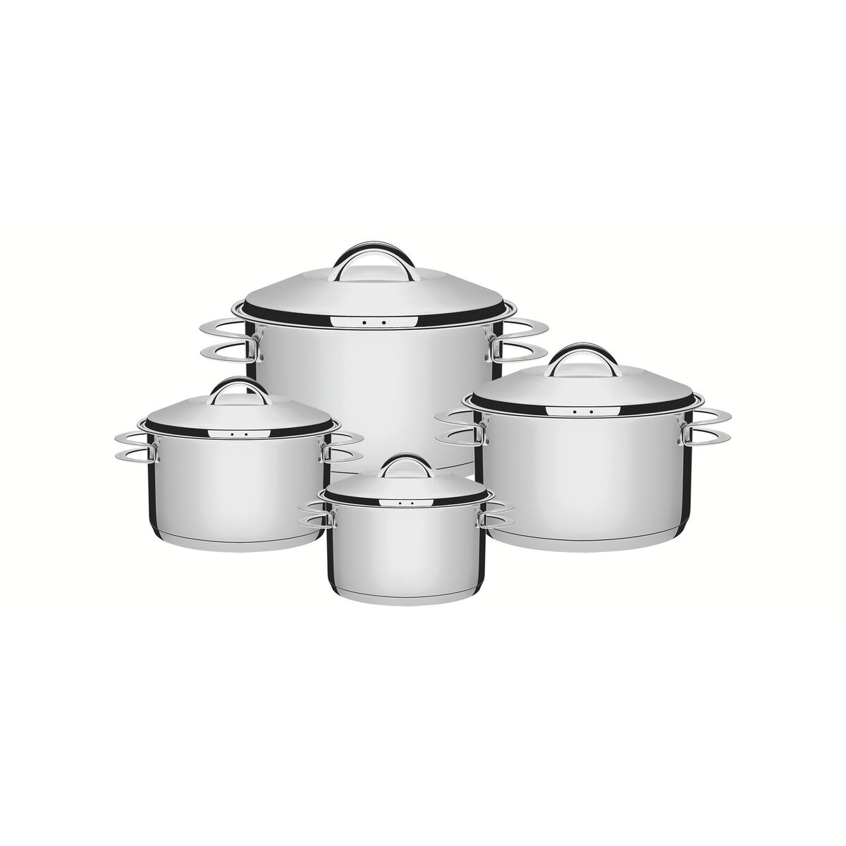 O design clean da linha Solar foi criado para tornar mais simples as tarefas de forno e fogão. O Jogo de Panelas Tramontina Solar em Aço Inox com Fundo Triplo 4 Peças possui um design moderno, com acabamento em alto brilho. O fundo triplo (aço inox + alumínio + aço inox) distribui o calor uniformemente, proporcionando um cozimento mais rápido e uniforme, economizando energia e deixando os alimentos aquecidos por mais tempo. Desenho limpo e sem cantos torna a limpeza mais fácil. Sua tampa tem saída de vapor e encaixe perfeito.