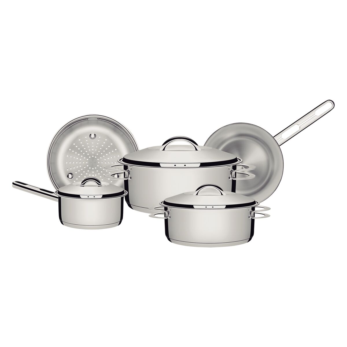 Tramontina é sinônimo de durabilidade e praticidade. O Jogo de Panelas Tramontina em Aço Inox Fundo Triplo 5 Peças da linha Solar une elegância com segurança. Totalmente feita em inox, não solta resíduos nos alimentos e seu fundo triplo (aço inox + alumínio + aço inox) distribui o calor uniformemente, proporcionando um cozimento mais rápido, economizando energia e deixando os alimentos aquecidos por mais tempo. Fáceis de limpar e altamente duráveis, as panelas podem ser lavadas diariamente e ser utilizadas em todos os fogões. O Jogo de Panelas Tramontina em Aço Inox Fundo Triplo vai renovar e dar beleza a sua cozinha!