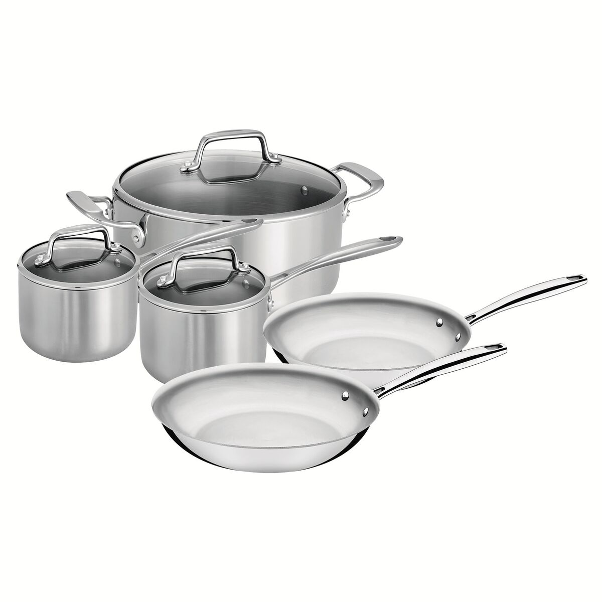 Totalmente feita em inox, não solta resíduos nos alimentos e seu fundo triplo (aço inox + alumínio + aço inox) distribui o calor uniformemente, proporcionando um cozimento mais rápido, economizando energia e deixando os alimentos aquecidos por mais tempo. Fáceis de limpar e altamente duráveis, as panelas podem ser lavadas diariamente e ser utilizadas em todos os fogões.
