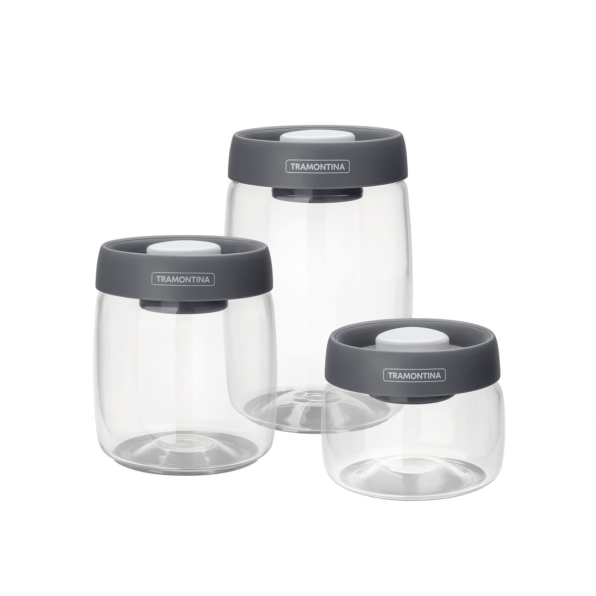 O Jogo de Potes Hermético de Vidro Tramontina Purezza com Tampa Plástica a Vácuo 3 Peças vai levar mais tecnologia e praticidade para dentro da sua cozinha. Com design diferenciado, as três peças são produzidas em vidro e possuem tampa plástica a vácuo, que retarda a oxidação dos alimentos, permitindo melhor conservação do sabor e dos nutrientes por mais tempo. São potes perfeitos para armazenar diversos tipos de alimentos como cereais, grãos, frutas, biscoitos e o que mais você precisar!
