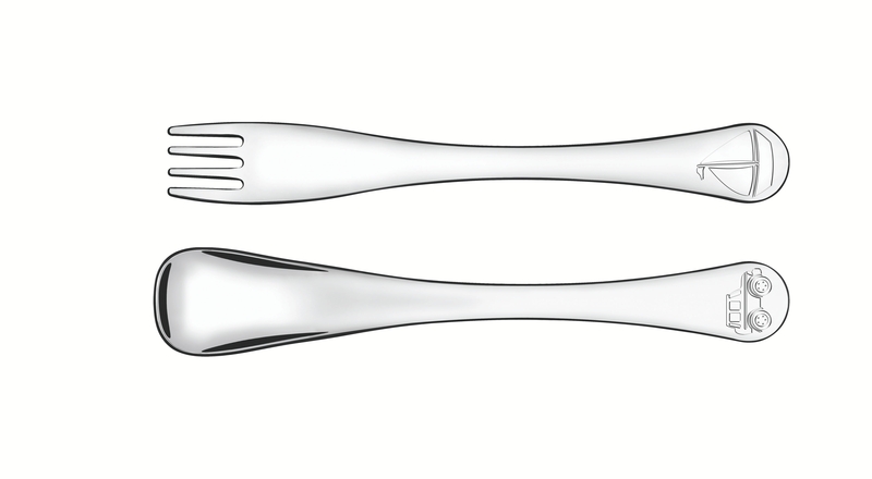 Talheres com formato ergonômico e com variação de desenhos, especialmente criados para incentivar e auxiliar no desenvolvimento das crianças.