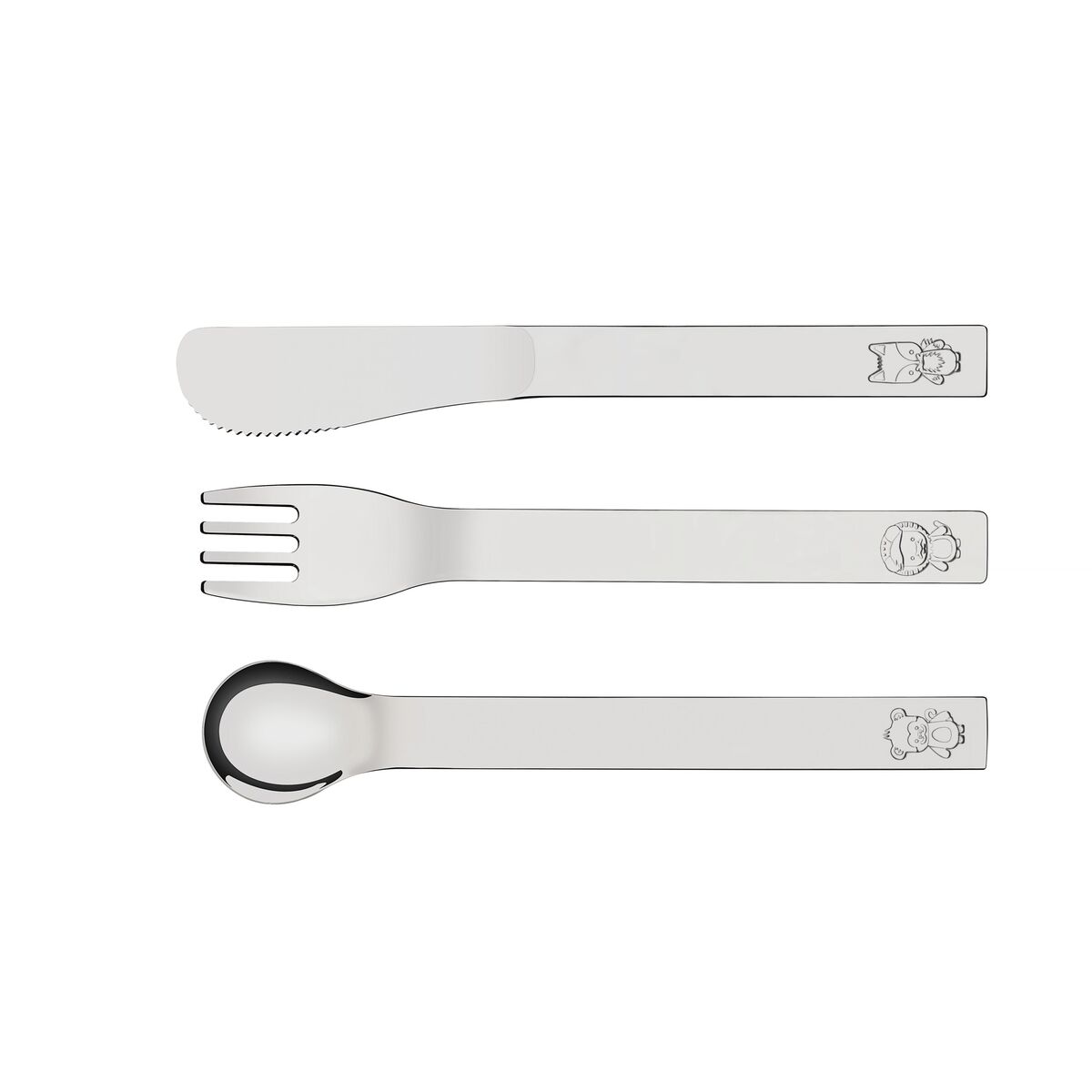 Talheres com formato ergonômico e com variação de desenhos, especialmente criados para incentivar e auxiliar no desenvolvimento das crianças.