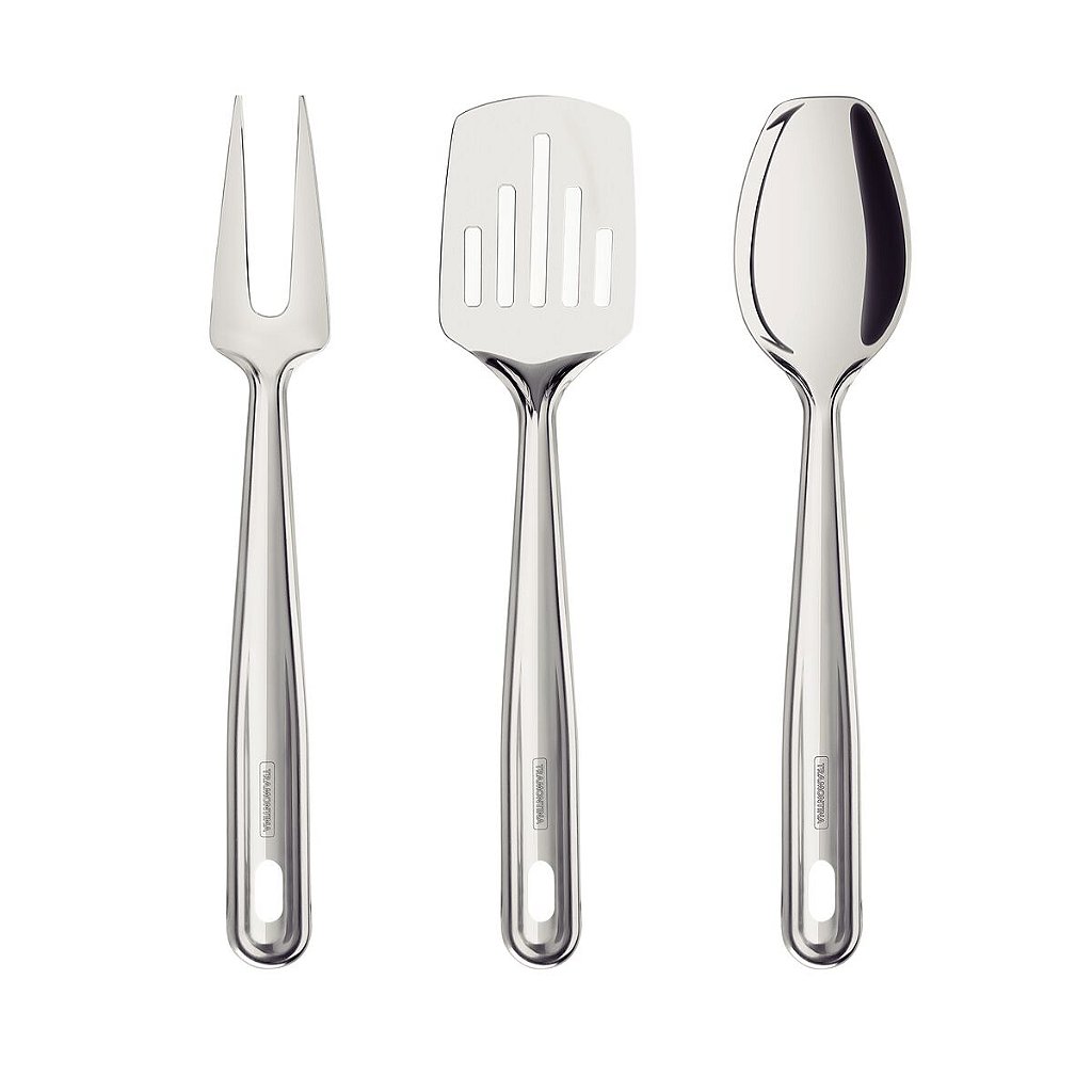 O Jogo de Utensílios Tramontina Extrata em Aço Inox 3 Peças da Linha Extrata vai deixar suas receitas mais saborosas. São três peças muito elegantes que trazem a resistência e durabilidade do aço inox. Você vai usá-las diariamente nos mais diferentes pratos e momentos. Os utensílios ainda são projetados para embelezar sua cozinha. Possuem furo no cabo, servindo também como encantadoras peças de decoração. São fáceis de limpar, podendo ser usadas na máquina de lavar louças.