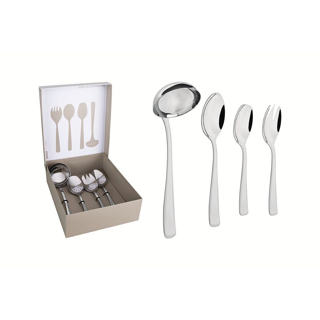 Com o Jogo de Utensílios Tramontina em Aço Inox 4 Peças da linha Pacific, ficará ainda mais fácil levar beleza e funcionalidade para a sua mesa. As peças são produzidas em aço inox, proporcionando durabilidade e uma qualidade única. Seu belíssimo design e acabamento em alto brilho, garantem a sofisticação e elegância que você procura. Para tornar a limpeza ainda mais prática, as peças podem ser lavadas diariamente na máquina de lavar.
