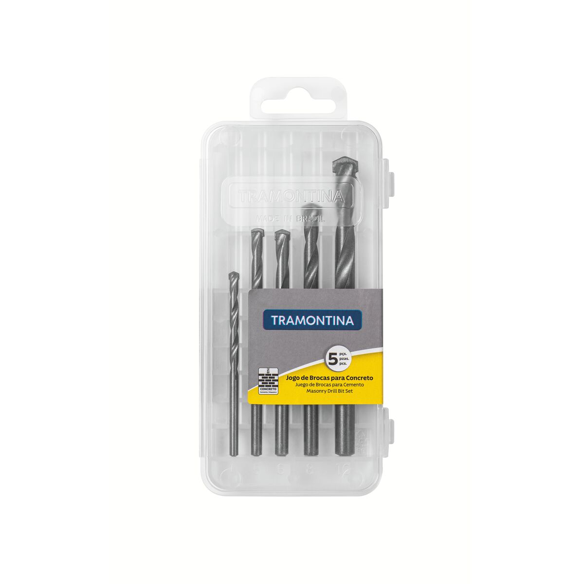 O Jogo de Brocas para Concreto Tramontina 5 Peças garante um trabalho bem feito na perfuração do concreto. Levando resistência e durabilidade para seus projetos, as cinco brocas devem ser utilizadas com furadeiras de impacto no modo martelete. Possuem os tamanhos 4, 5, 6, 8, 10 mm.
