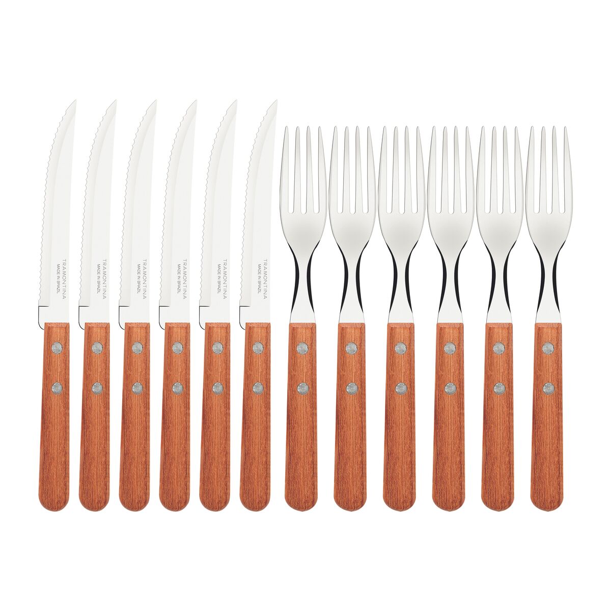 O Kit para Churrasco Tramontina em Aço Inox com Cabo de Madeira Natural 12 Peças da linha Churrasco foi desenvolvido especialmente para lhe tornar um churrasqueiro de primeira, fazendo da sua confraternização um momento ainda mais especial entre amigos e familiares. O kit conta com garfos e facas para churrasco, garfo trinchante, faca para carne e pegador com lâminas em aço inox. Todas as peças possuem cabo de madeira natural. São essa características que fazem do Kit para Churrasco a escolha perfeita para quem se preocupa com todos os detalhes de um churrasco de qualidade.
