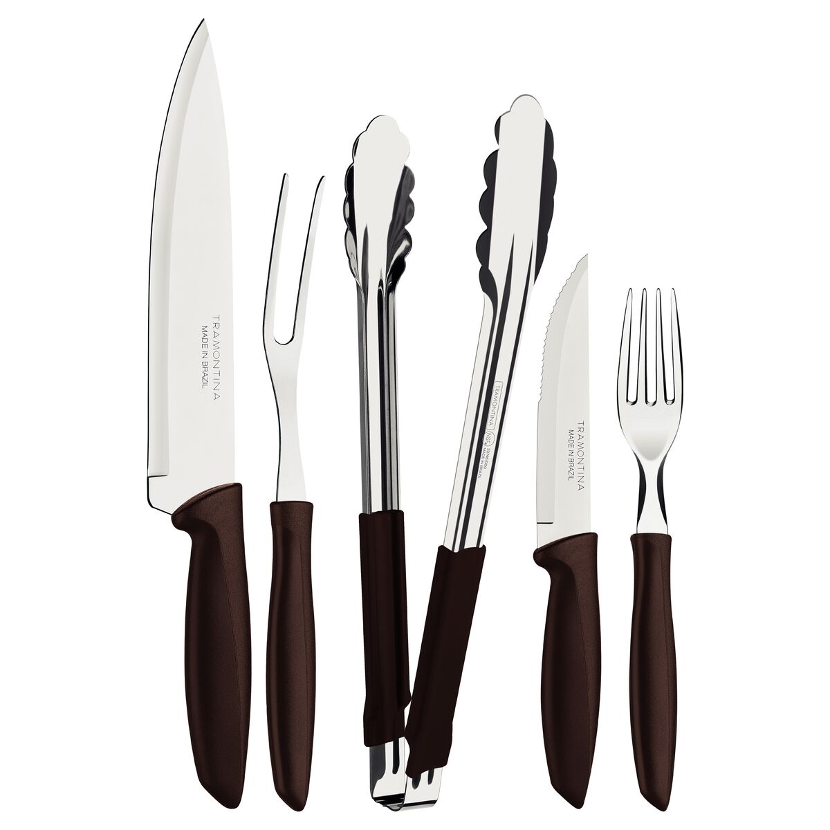 O jogo para churrasco Tramontina Plenus com lâminas de aço inox e cabos de polipropileno marrom 15 peças é essencial para preparar e servir o churrasco com muita qualidade e estilo. Desenvolvidas em aço inox, as facas tem tratamento térmico e o garfo e o pegador contam com estampagem e espessura especial do aço. Os cabos são de polipropileno e em conjunto com as outras características, proporcionam maior resistência e durabilidade, podendo ser levado à máquina de lavar louças, facilitando seu dia a dia!