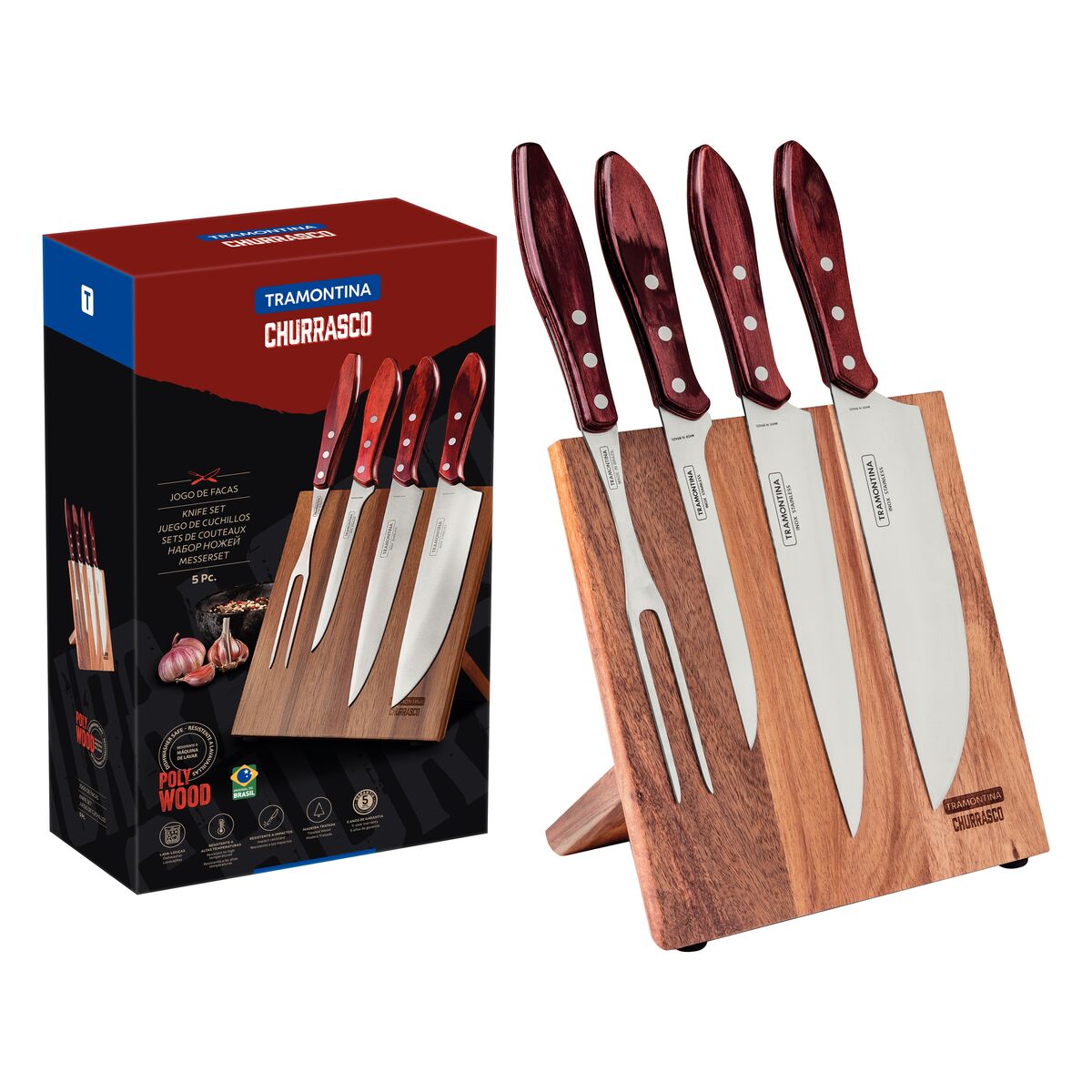 Jogo para Churrasco Tramontina com Lâminas em Aço Inox e Cabos em Madeira Polywood Vermelho 5 Peças