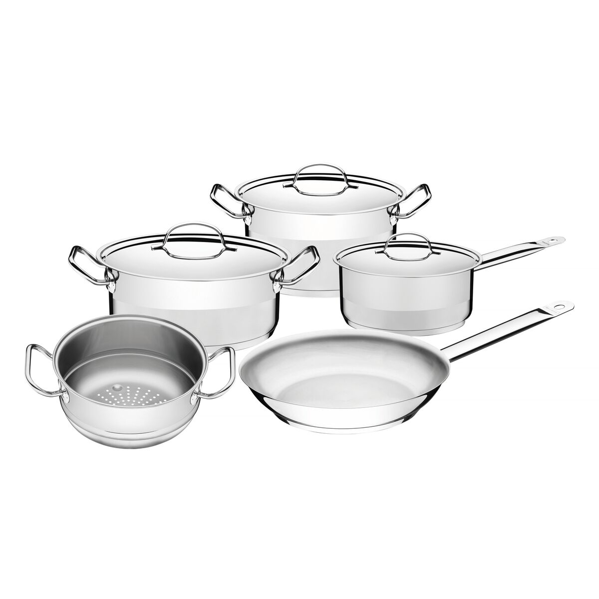 1 62624200 Caçarola funda Ø 20cm 3,60l Professional + 1 62623240 Caçarola rasa Ø 24cm 4,70l Professional + 1 62630200 Cozi-vapore Ø 20cm 3,20l Professional + 1 62635260 Frigideira Ø 26cm 2,00l Professional + 1 62621160 Panela Ø 16cm 1,40l Professional