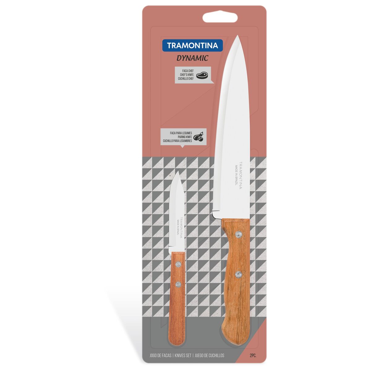 Com cabos de madeira natural e rebites de alumínio, as facas da Linha Dynamic levam rusticidade e beleza às refeições informais. A qualidade das peças é garantida também pela espessura e formato das lâminas de aço inox. As lâminas das facas recebem tratamento térmico, resultando em maior resistência e durabilidade do fio de corte.