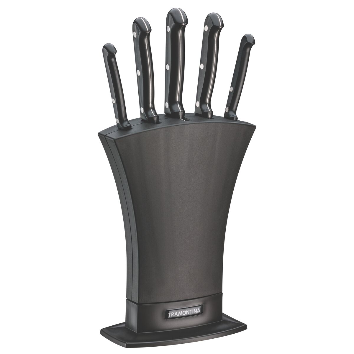 Jogo de Facas Tramontina Ultracorte com Lâminas em Aço Inox Cabos e Suporte em Polipropileno Preto 6 Peças