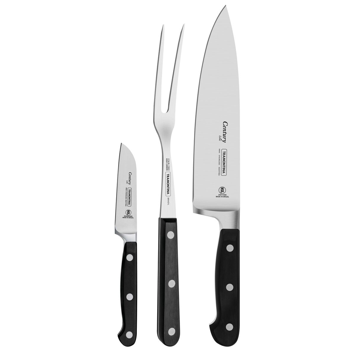 Jogo de Facas Tramontina Century com Lâminas em Aço Inox e Cabos em Policarbonato e Fibra de Vidro 3 Peças