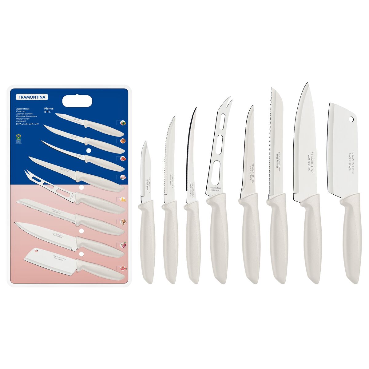 Jogo de Facas Tramontina Plenus com Lâminas em Aço Inox e Cabos de Polipropileno Off White 8 Peças