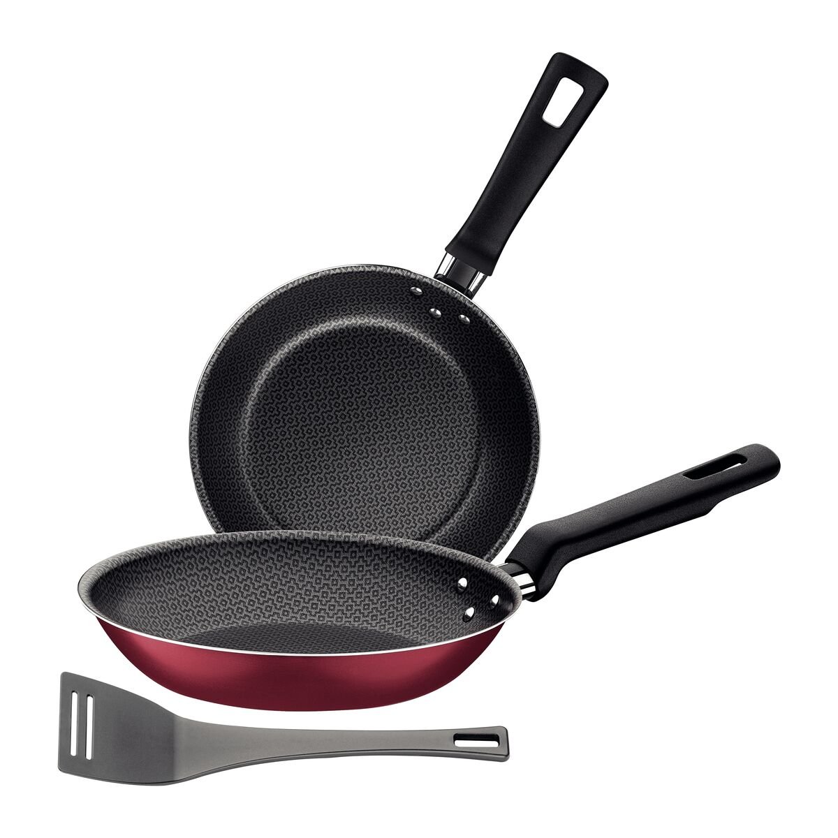Jogo de Frigideiras Tramontina Loreto em Alumínio com Revestimento Interno e Externo Antiaderente Starflon T1 com Cabos de Baquelite Vermelho 3 Peças