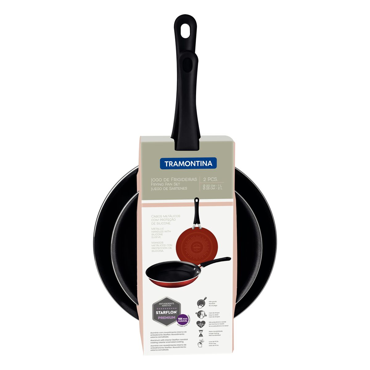 O sentimento de nostalgia irá invadir sua cozinha com o jogo de frigideiras Tramontina em alumínio com revestimento interno em Starflon Premium e externo esmaltado preto 02 peças. Com design moderno, as peças do jogo são desenvolvidas em alumínio e contam com espessura especial que proporciona um cozimento rápido e uniforme dos alimentos. Internamente, as frigideiras são revestidas em Starflon Premium, antiaderente que evita que os alimentos grudem na superfície e que as torna fáceis de limpar. Os cabos são metálicos e contam com proteção em silicone, material que não aquece e torna o manuseio mais seguro. Na parte externa, elas são esmaltadas e para garantir praticidade, podem ser levadas à máquina de lavar louças!