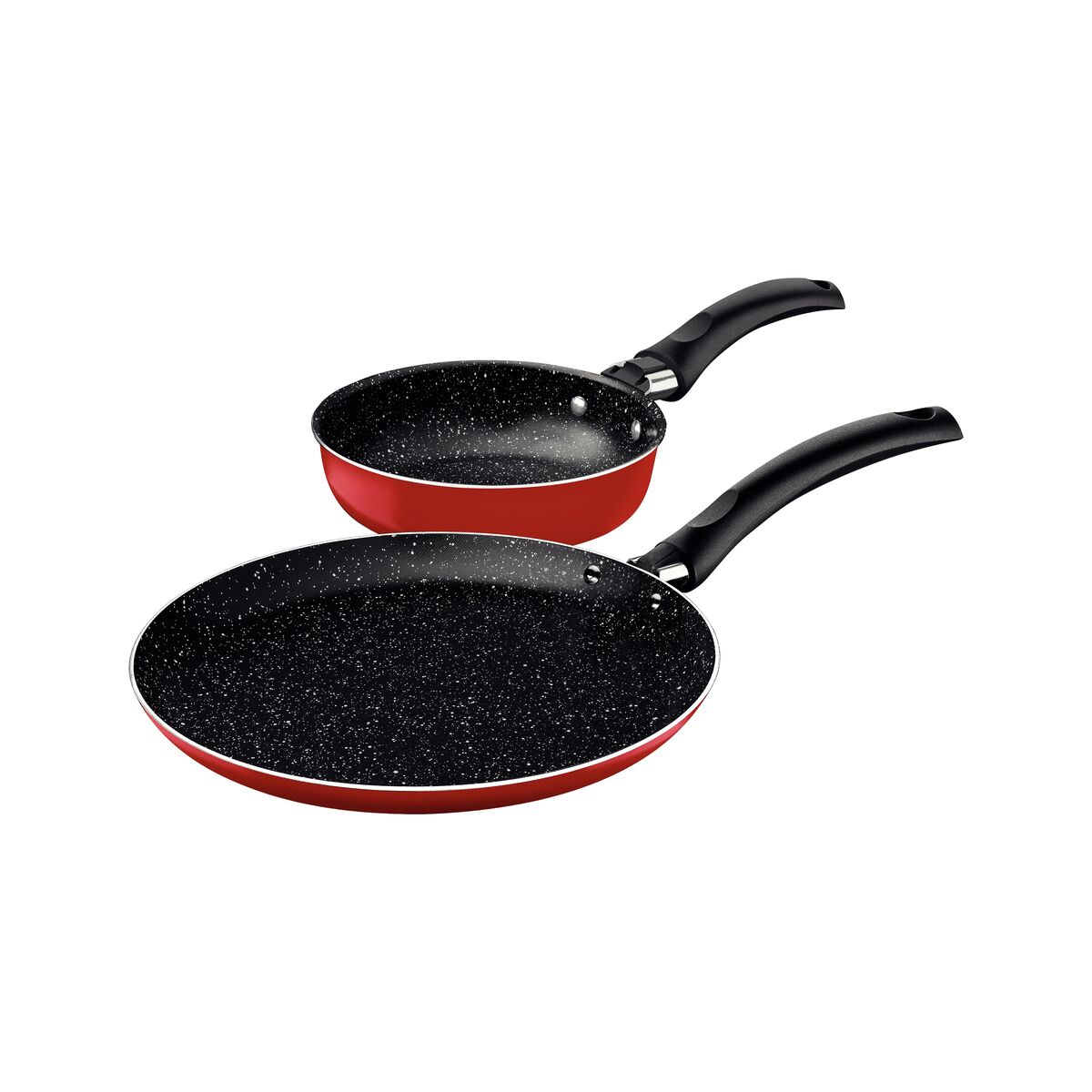 Prepare um café da manhã delicioso e com tudo o que você e sua família tem direito, com o jogo de frigideira e panquequeira Tramontina Roch em alumínio com revestimento interno em antiaderente Starflon Max e externo de poliéster vermelho 02 peças. Com ele, você prepara tapiocas, panquecas e aquele omelete deliciosos com maior agilidade, pois as peças são produzidas em alumínio com espessura especial. Externamente ela é revestida em poliéster e internamente em antiaderente Starflon Max, material que não gruda, é fácil de limpar e mais durável. Os cabos são em baquelite, material antitérmico que não aquece e oferece maior segurança durante o manuseio!