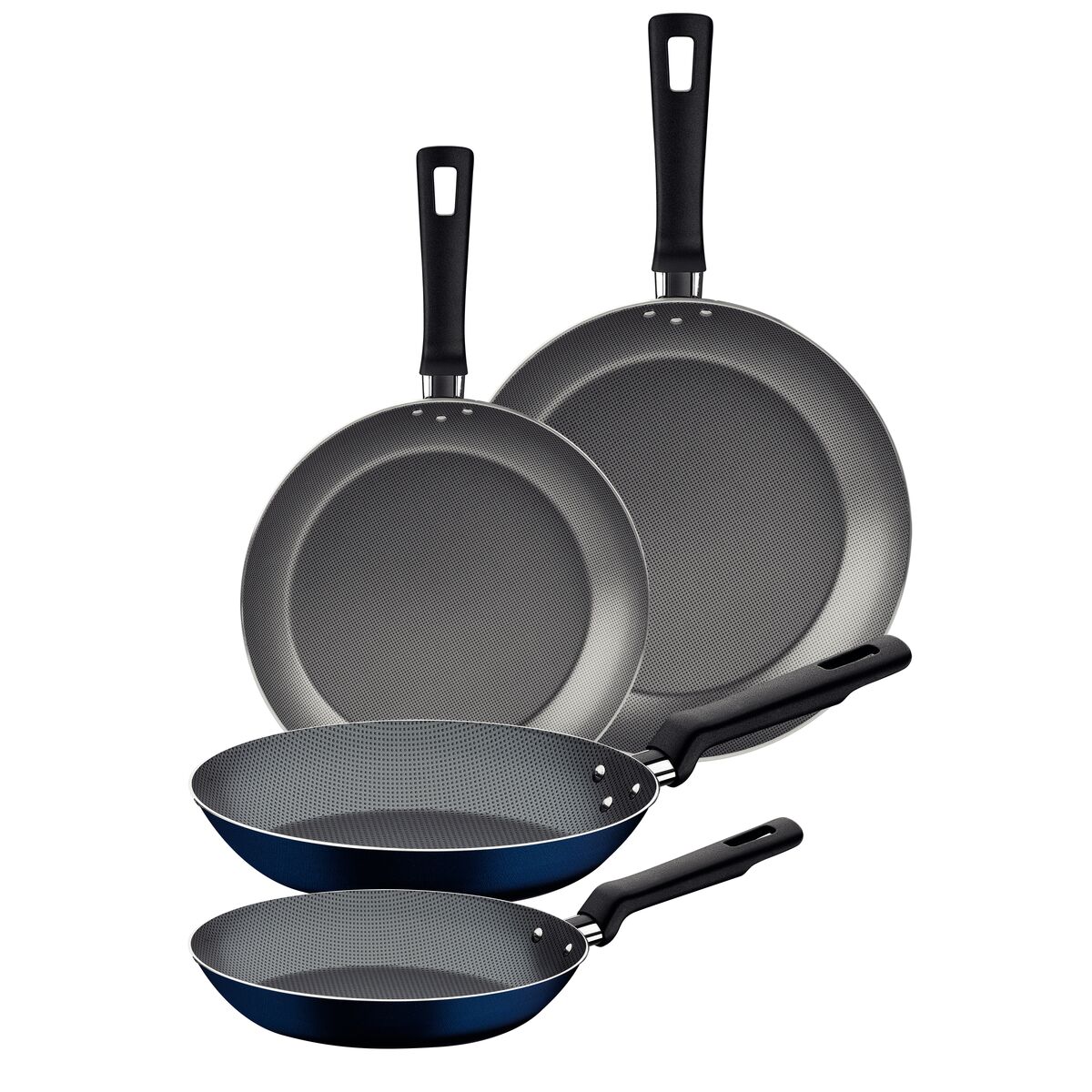 Para preparar desde o seu café da manhã até o seu jantar, o jogo de frigideiras Tramontina em Alumínio com revestimento interno e externo em Starflon Max azul 04 peças é essencial. Com peças de diferentes tamanho, o jogo garante um cozimento rápido e uniforme dos alimentos sem que eles grudem na superfície, pois é produzido em alumínio com revestimento em antiaderente Starflon Max, material que evita que os alimentos grudem, é fácil de limpar, mais durável e não prejudicial a saúde. Seus cabos são em baquelite antitérmico e oferecem maior segurança durante o manuseio, pois não aquecem. Além dessas características, as peças podem ir à máquina de lavar louças e vão otimizar seu dia a dia na cozinha!