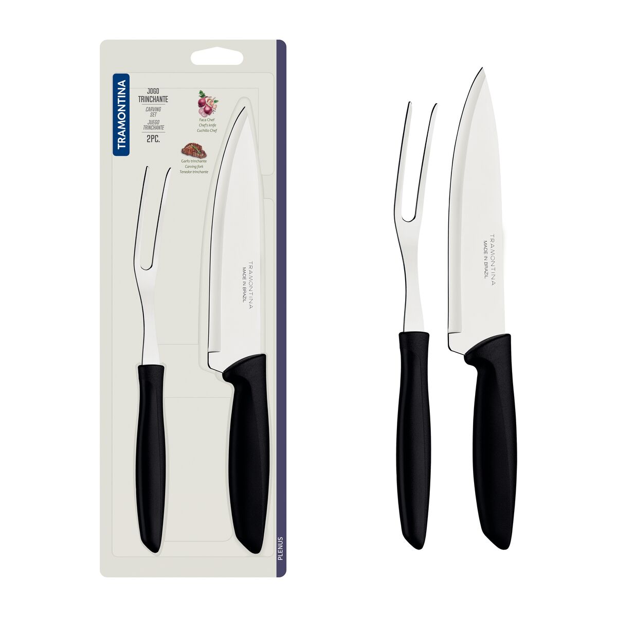 Jogo Trinchante Tramontina Plenus com Lâmina em Aço Inox e Cabo de Polipropileno Preto 2 Peças