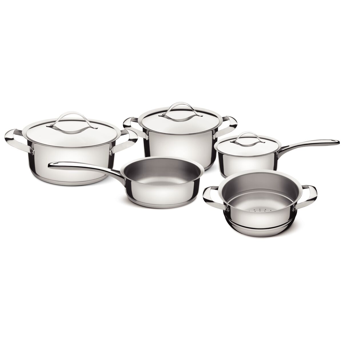 1 62984200 Caçarola Funda Ø 20 cm 3,6l Duo + 1 62983240 Caçarola Rasa Ø 24 cm 4,7l Duo + 1 62990200 Cozi-vapore Ø 20 cm 3,13l Duo + 1 62980205 Frigideira sem tampa Ø 20 cm 2,10l Duo + 1 62981160 Panela Ø 16 cm 1,43l Duo
