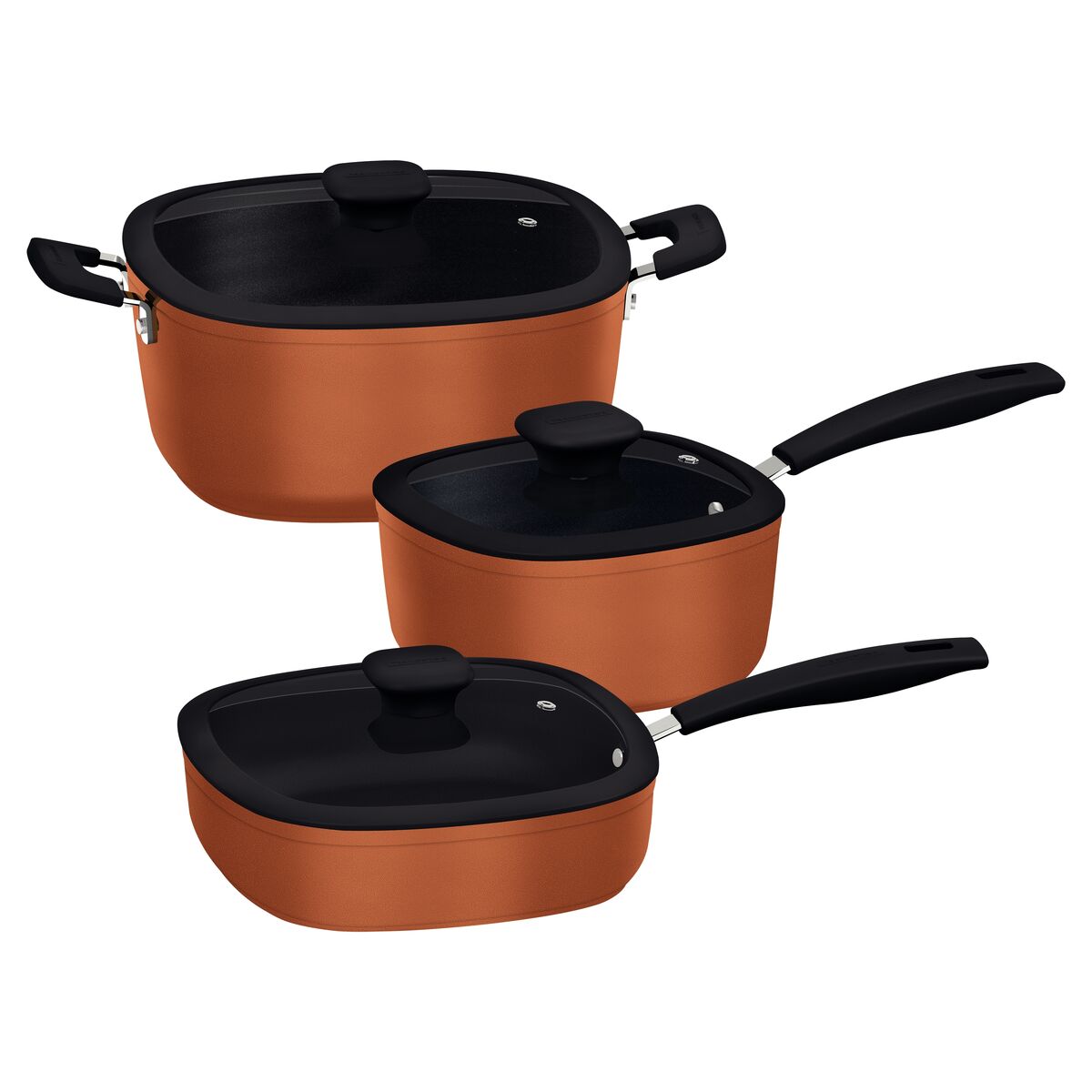 Se você deseja uma cozinha impecável, cheia de estilo e que lhe garanta um preparo muito mais eficiente para suas refeições, o jogo de panelas Tramontina Refinatta em alumínio com revestimento interno e externo em antiaderente Starflon Premium cobre 03 peças. Composto por panela, caçarola e frigideira, ele é um jogo ideal para quem preza por alta qualidade na cozinha, sem abrir mão da beleza e da funcionalidade. As peças são produzidas com corpo de alumínio com espessura de 3,0 milímetros e revestimento em antiaderente Starflon Premium, proporcionam um cozimento rápido e uniforme dos alimentos, sem que eles grudem em superfície. Elas vem com tampas de vidro temperado com saída de vapor e bordas de silicone, tem alças e cabos de aço inox com proteção de silicone e pegadores de baquelite antitérmico, que reduzem a propagação de calor, aumentam a segurança e melhoram a empunhadura. As peças do jogo ainda podem ir à máquina de lavar louças, são fáceis de limpar, mais duráveis e não são prejudiciais à saúde. Um jogo Tramontina desenvolvido para você fazer bonito na cozinha!