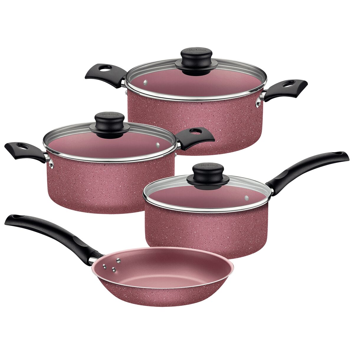 O jogo de panelas Tramontina Turim em aluminio com revestimento interno e externo em antiaderente Starflon Max rosa 07 peças é a escolha ideal para preparar suas receitas com estilo e eficiência. Desenvolvidas com corpo de alumínio e revestimento interno e externo em antiaderente Starflon Max, suas peças cozinham os alimentos de maneira rápida e uniforme, sem se preocupar com alimentos grudados na superfície. As panelas e caçarolas vem com tampas de vidro temperado com bordas em aço inox e para sua segurança, elas são equipadas com cabos e alças de baquelite antitérmico, além de pegadores de nylon. Para facilitar ainda mais a sua vida, as peças podem ser lavadas na máquina de lavar louças e serem utilizadas em fogões a gás, elétricos e vitrocerâmicos. Com ele, você irá cozinhar com qualidade, praticidade e beleza!