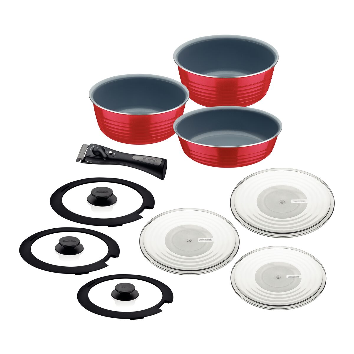 A versatilidade é a principal característica do jogo de panelas multiuso Tramontina Ítria em alumínio com revestimento interno e externo Cerâmico vermelho 10 Peças. Com ele, você tem a possibilidade de preparar e armazenar suas refeições, pois ele vem com tampas de vidro temperado com borda de silicone e tampas de polipropileno. O corpo das peças são em alumínio com espessura que proporciona cozimento rápido e uniforme dos alimentos e contam com revestimento interno e externo cerâmico, que oferece facilidade na limpeza e é mais durável. O cabo removível e os pegadores são em material antitérmico, oferecem segurança e deixam o preparo mais simples, fácil e seguro. Além de todas essas características elas podem ir à máquina de lavar louças. Um jogo essencial para garantir uma cozinha muito mais prática e completa!