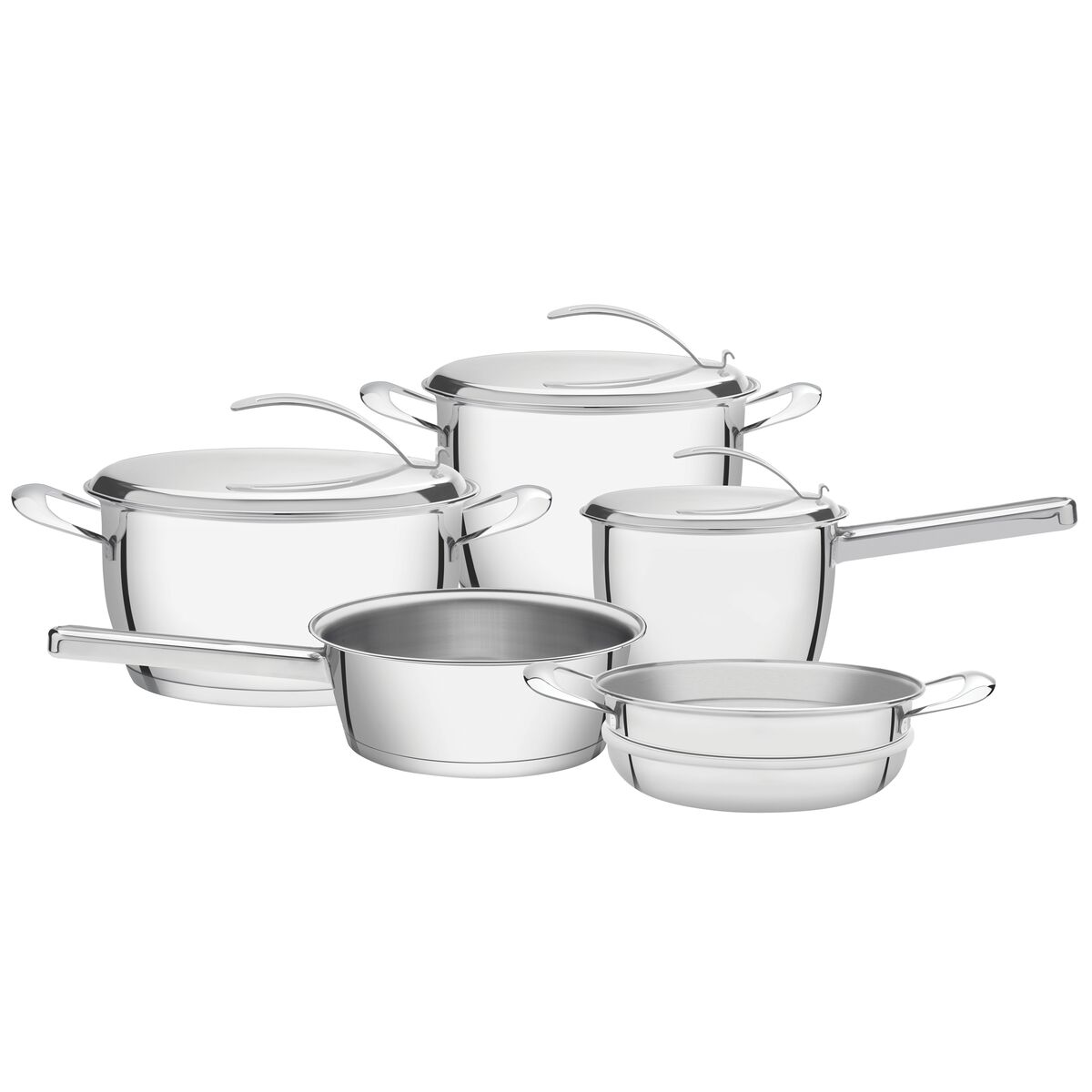 1 62364200 Caçarola funda Diâmetro 20cm 3,10l Ventura + 1 62363220 Caçarola rasa Diâmetro 22cm 3,30l Ventura + 1 62370200 Cozi-vapore Diâmetro 20cm 2,20l Ventura + 1 62360200 Frigideira sem tampa Diâmetro 20cm 2,20l Ventura + 1 62361160 Panela Diâmetro 16cm 1,50l Ventura