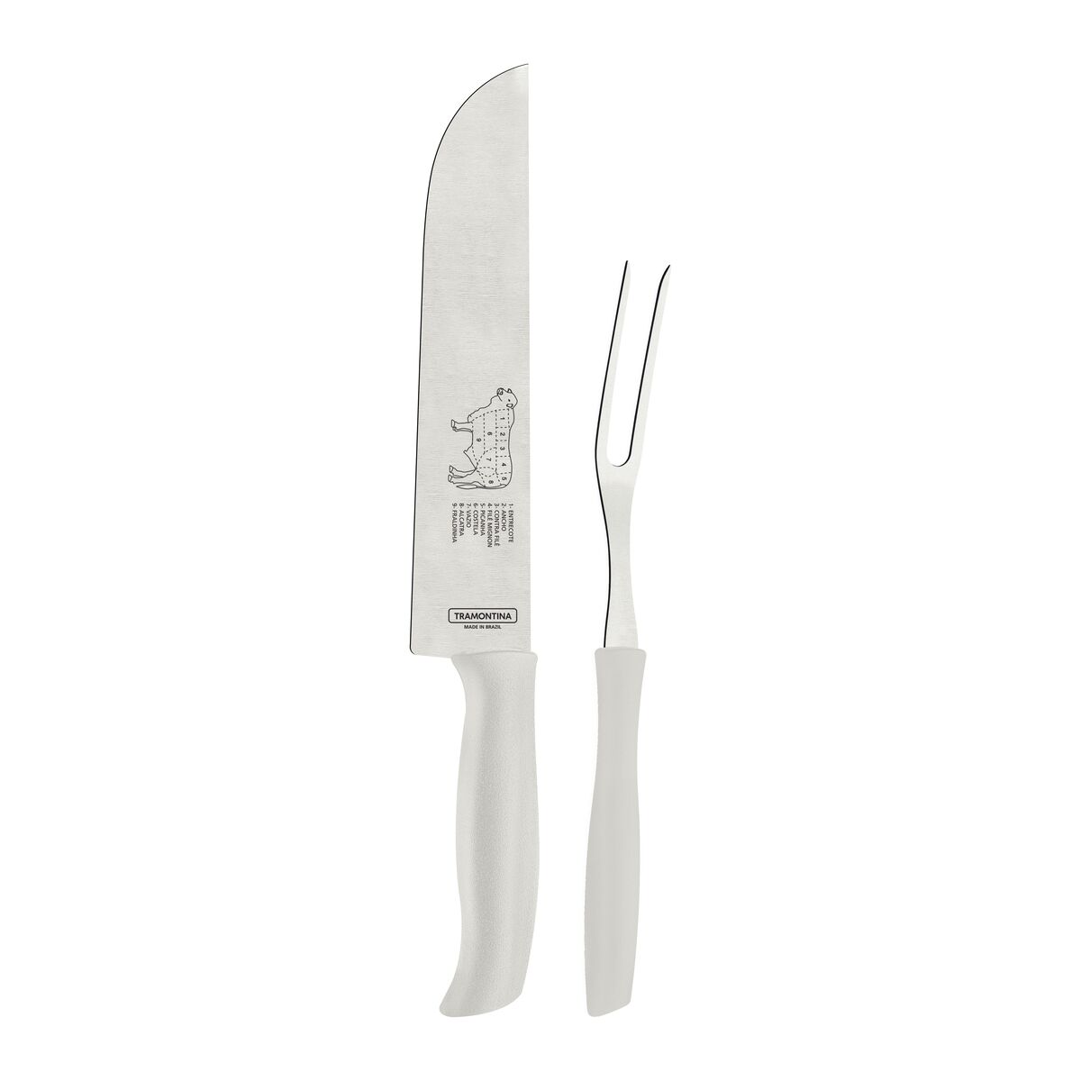 O jogo trinchante Tramontina Profit com lâminas de aço inox e cabos de polipropileno branco 02 peças é a escolha ideal para servir aquela carne assada deliciosa com maior praticidade. Desenvolvidos com lâmina em aço inox e cabo de polipropileno, a faca conta com maior durabilidade do fio devido ao tratamento térmico e o garfo maior espessura e estampagem do aço, que garante maior resistência e evita deformações. Os itens do jogo ainda podem ser levados à máquina de lavar louças, facilitando seu dia a dia. Escolha Tramontina e faça bonito na hora das suas refeições!
