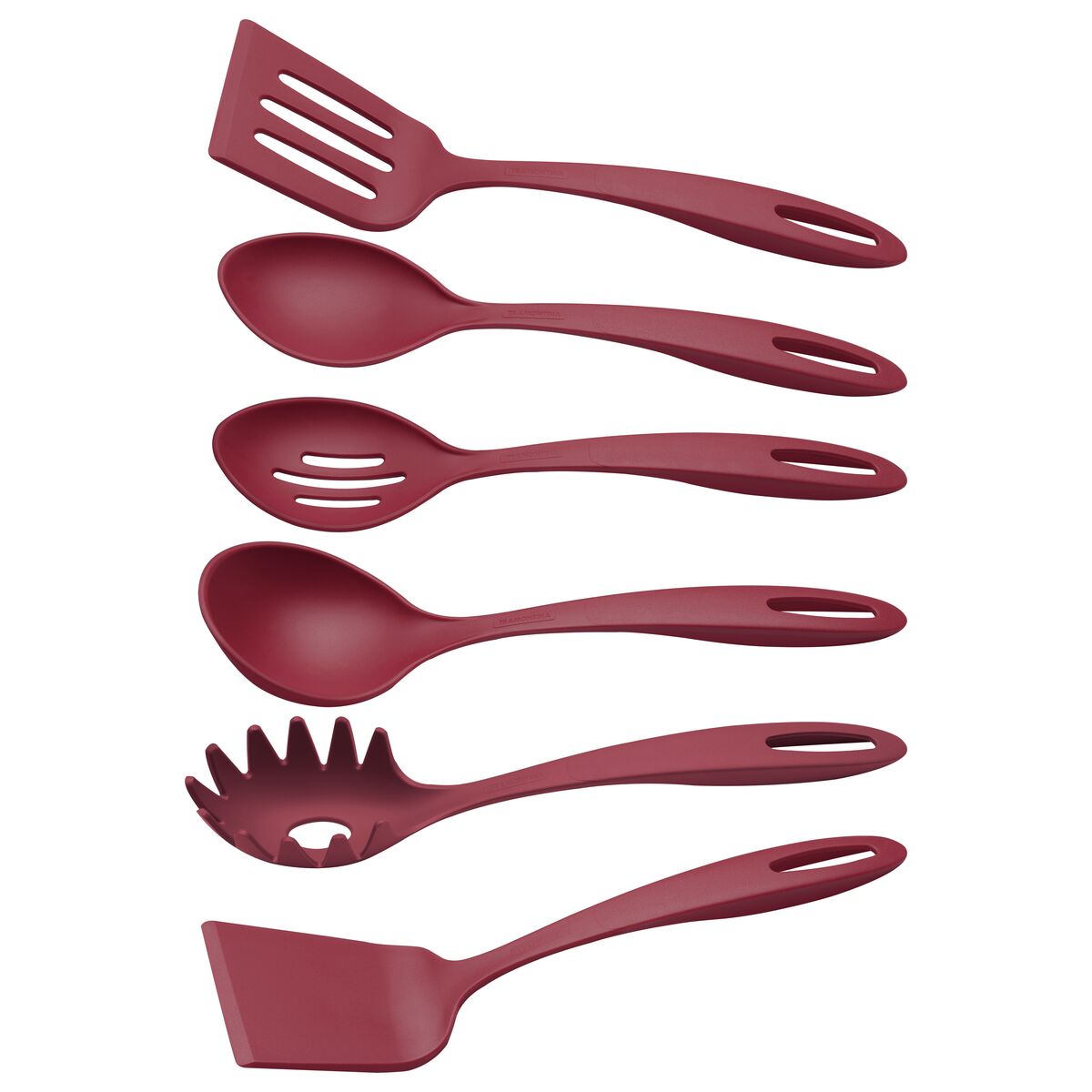 Com o jogo de utensílios Tramontina Ability em nylon vermelho 06 peças você irá garantir muita versatilidade em sua cozinha, pois terá itens adequados para preparar e servir suas receitas. Desenvolvidos em nylon, os utensílios são resistentes e suportam temperaturas até 180 graus. E, ainda, podem ser levados à máquina de lavar louças. Além dessas características, eles contam com furo em seus cabos, que permitem que sejam pendurados em sua cozinha, agregando em sua decoração!