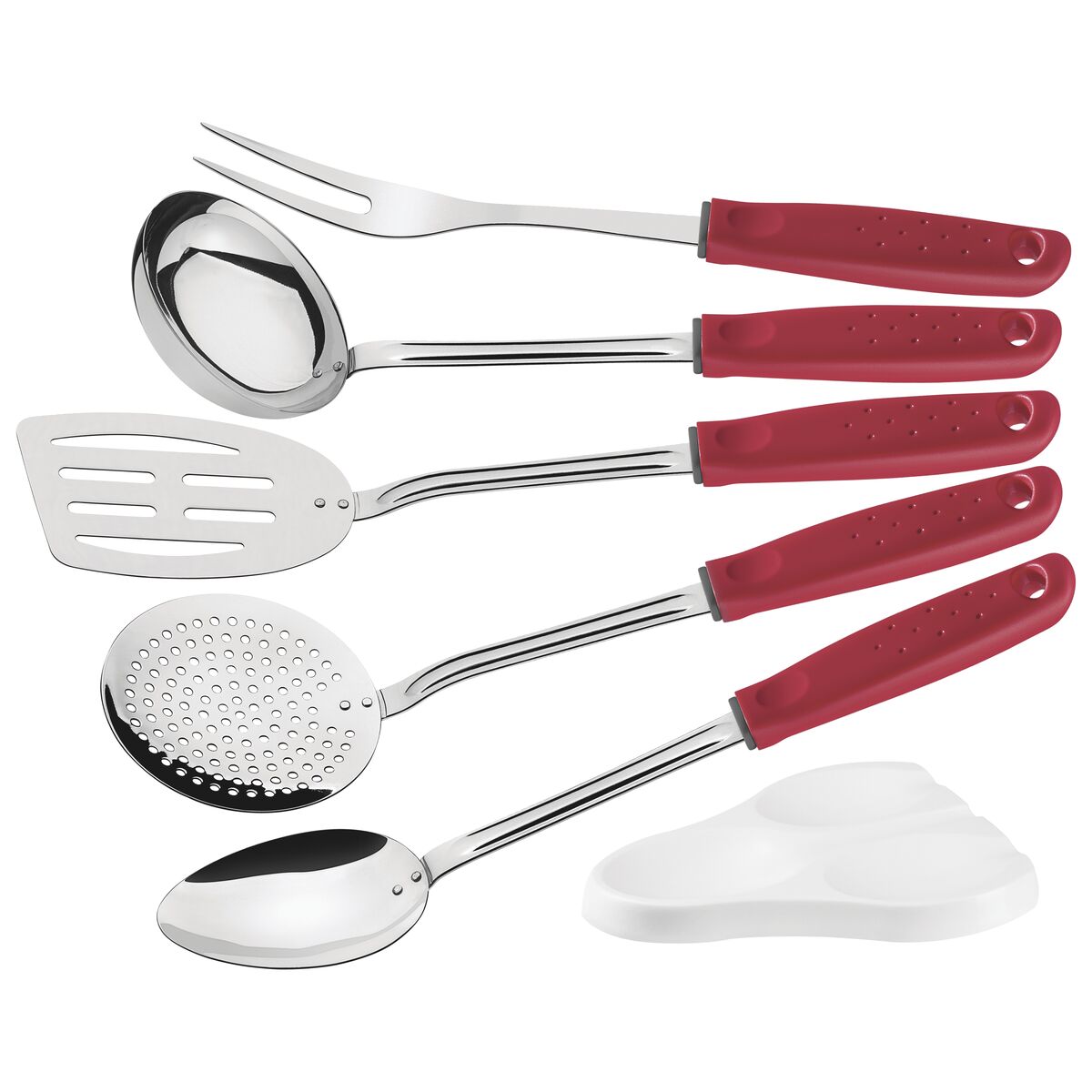 Jogo de Utensílios Tramontina Utilitá em Aço Inox com Cabos de Polipropileno Vermelho 6 Peças