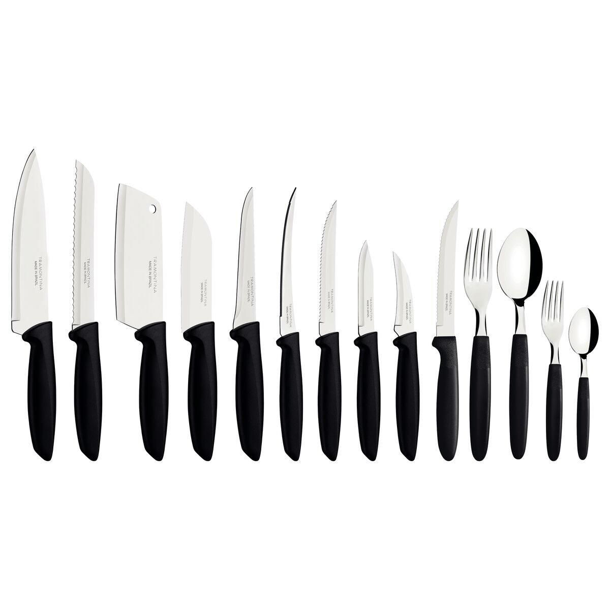 Quem preza por uma cozinha completa, com itens que tornem o preparo das receitas e a hora de saboreá-las ainda mais prático, precisa conhecer o kit cozinha Tramontina com lâminas em aço inox e cabos de polipropileno preto 39 peças. Composto por peças perfeitas para lhe acompanhar diariamente, como facas, cutelo e talheres de mesa, ele vai deixar suas atividades na cozinha muito mais práticas e eficientes. Elas são produzidas com lâminas em aço inox, onde as facas tem aplicação de tratamento térmico que oferece maior poder de corte e durabilidade em seu fio e os garfos e colheres contam com maior resistência devido a estampagem e espessura do aço. Todos os cabos são em polipropileno, têm formato que proporcionam um manuseio mais seguro, pois garantem maior firmeza. Além de todas essas características, as peças do kit podem ser levadas à máquina de lavar louças, levando maior facilidade para seu dia a dia na cozinha. Escolha Tramontina e veja sua casa e sua cozinha serem transformadas!
