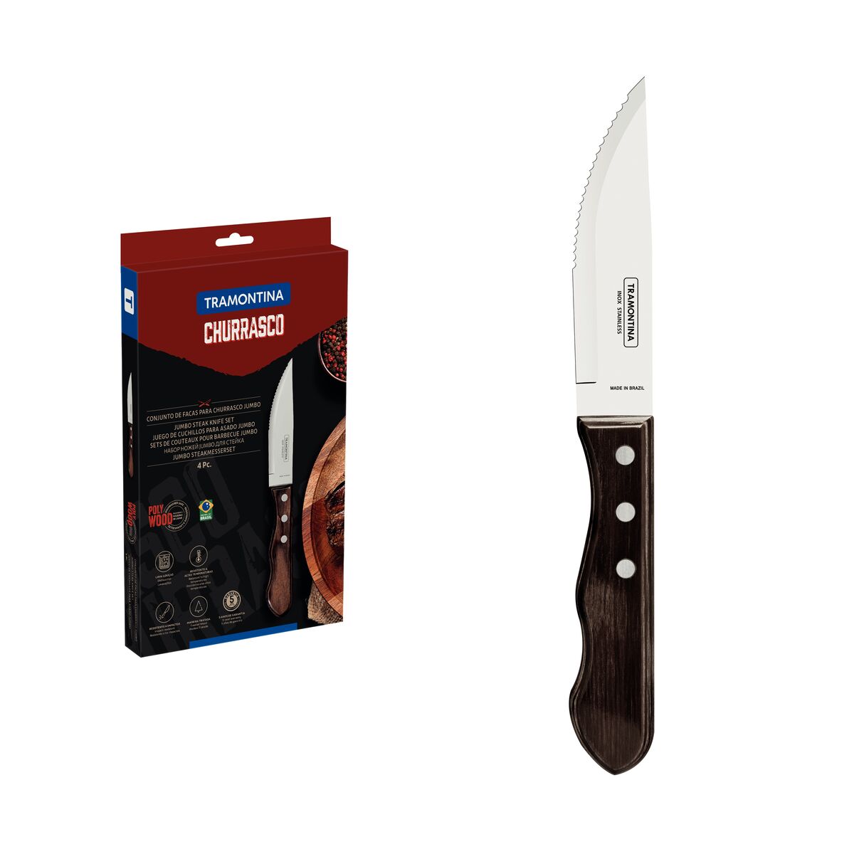 Conjunto de Facas para Churrasco Jumbo Tramontina em Aço Inox com Cabo Castanho Polywood 4 Peças