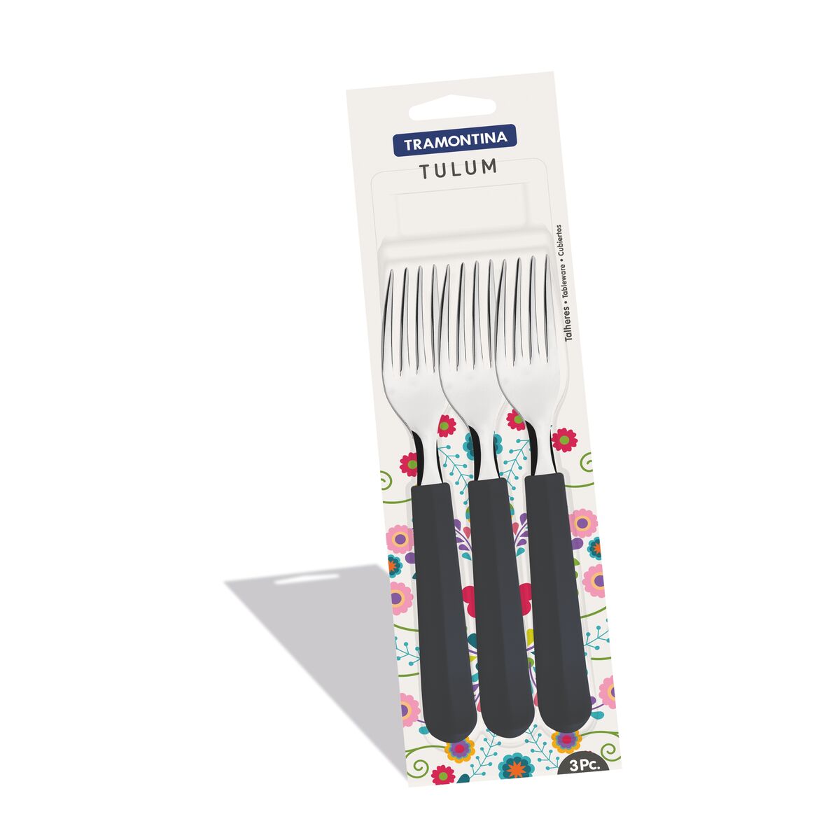Os talheres da linha Tulum são próprios para as refeições diárias. Despojados, têm nas diferentes opções de cores dos cabos de polipropileno o toque de alegria que vai à mesa. Os garfos são de aço inox em espessuras que garantem alta resistência e durabilidade. O formato das lâminas impede deformações. Podem ser levados à máquina de lavar.