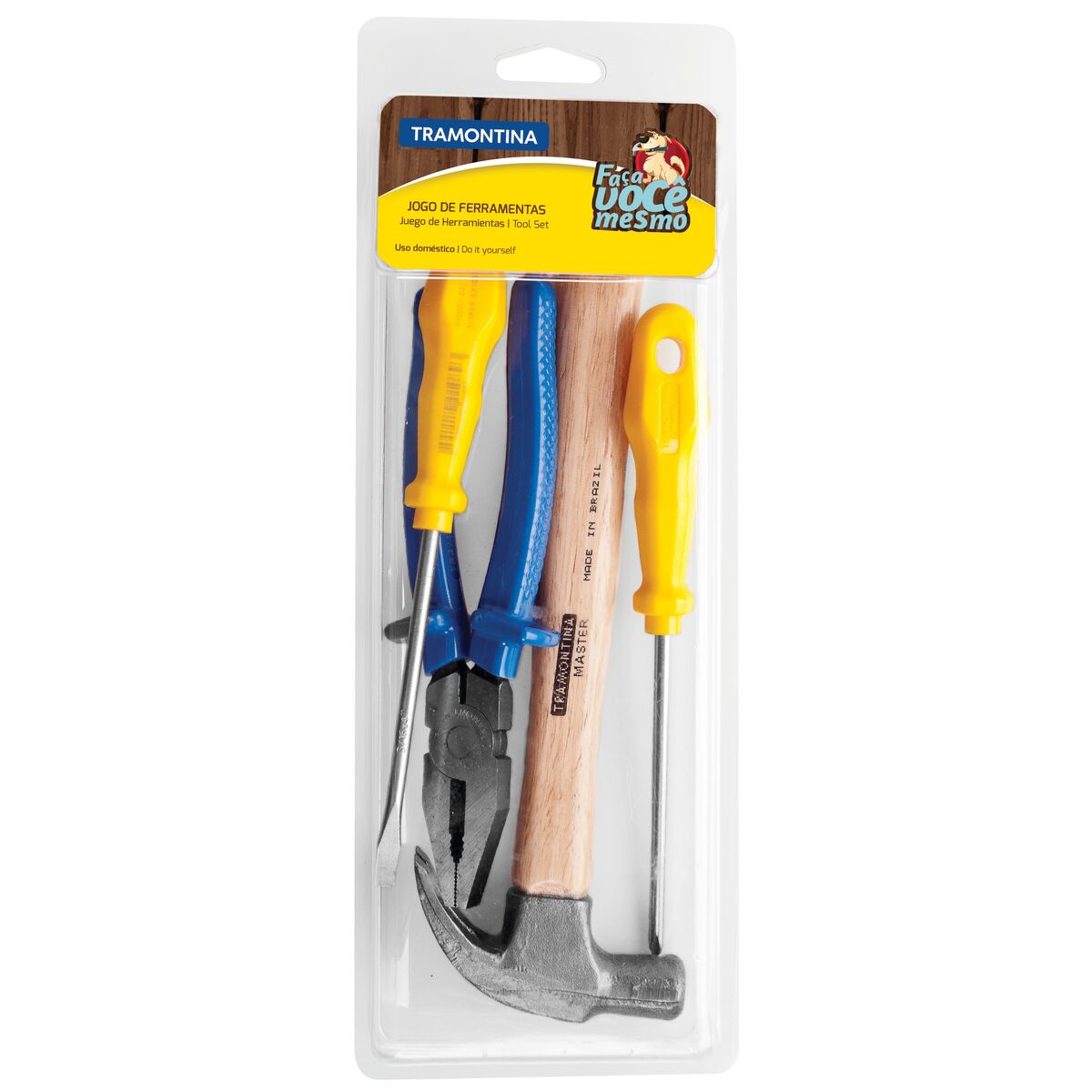 1 41002107 Alicate universal 7" + 1 41500021 Chave de fenda ponta chata 3/16x4" + 1 41505021 Chave de fenda ponta cruzada 3/16x4" + 1 40370018 Martelo de unha 18 mm