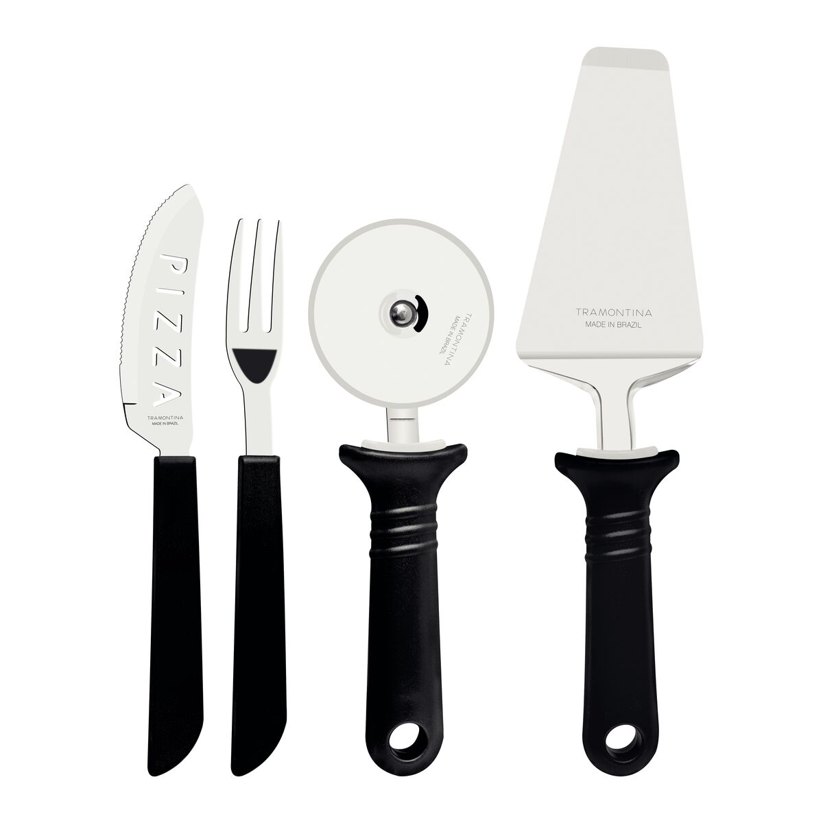 Para aproveitar aquela noite especial com os amigos, nada melhor que uma pizza, não é mesmo?! E para esse momento, você precisa contar com o kit para pizza Tramontina com lâminas de aço inox e cabos de polipropileno preto 14 peças. Ideal para cortar, servir e saborear, ele tem suas peças produzidas com lâminas de aço inox, onde as facas contam com tratamento térmico e os garfos tem espessura e estampagem especial, o que lhes garante maior poder de corte, resistência e durabilidade. Os cabos são de polipropileno com estrutura anatômica e permitem que sejam levadas à máquina de lavar louças, facilitando seu dia a dia!