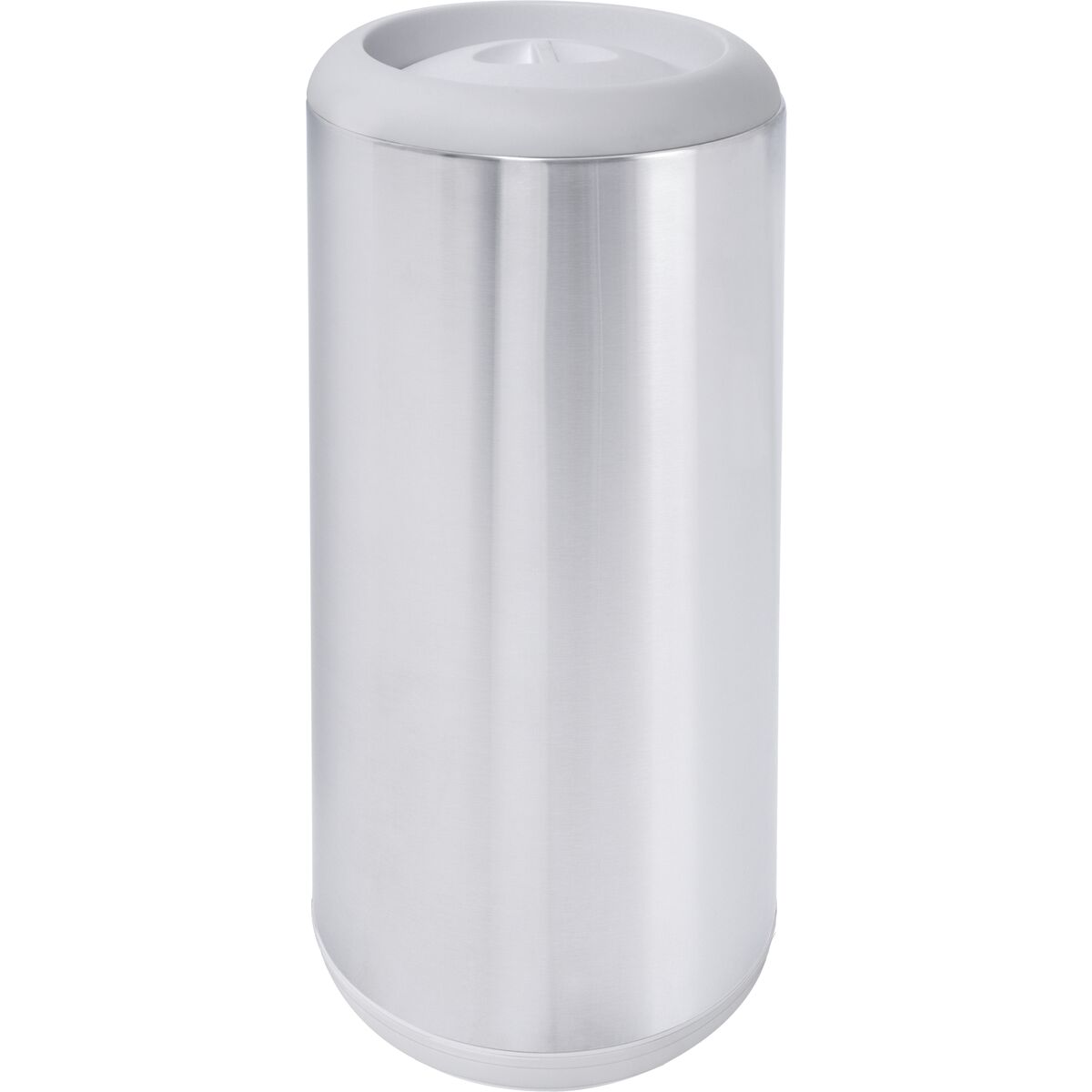 Lixeira com tampa - Possui base plástica e corpo em inox - Acabamento em duas opções: Polido ou Scotch brite - A lixeira em aço inox é higiênica, durável e de excelente apresentação.