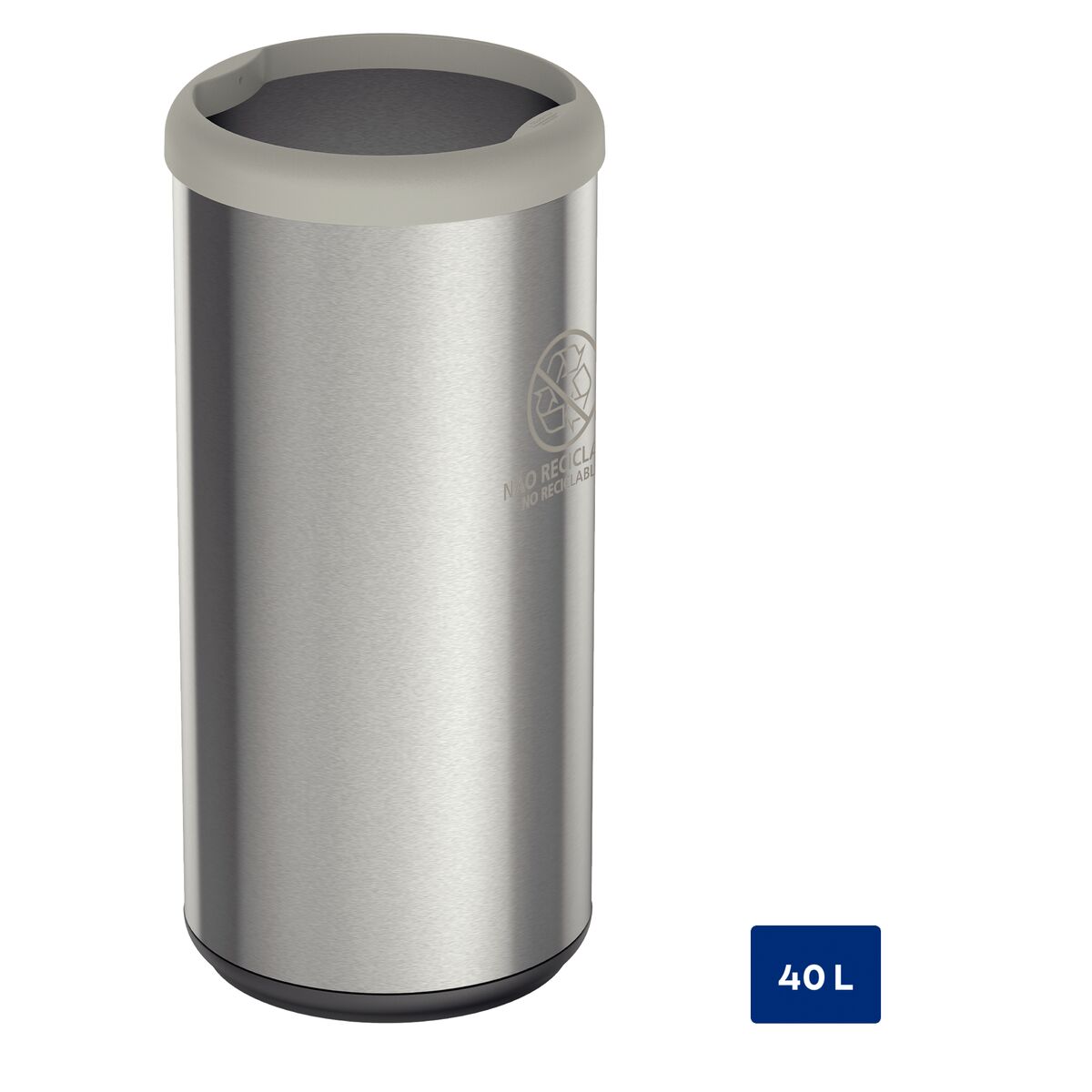 Lixeira Cápsula Selecta Plus 40L Fabricado no Brasil. Produto: Pensado para ambientes domésticos, empresariais ou de grande circulação de pessoas - escolas, restaurantes, supermercados, shoppings centers, entre outros - o modelo possibilita a correta separação dos resíduos. O adesivo cinza (acompanha o produto) indica que a lixeira é para descarte de resíduos não recicláveis. Material: Fabricada em Aço Inox 304 com acabamento polido, esta lixeira oferece ainda aro e base em polipropileno.
