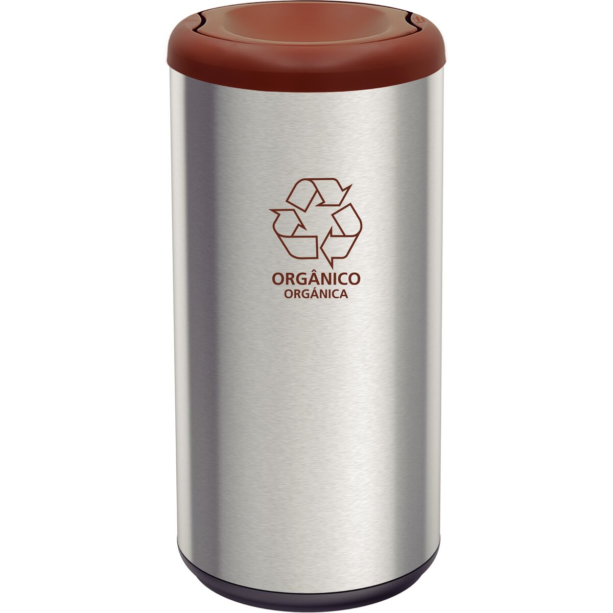 Lixeira com tampa Cápsula Selecta Plus Basculante 40L Fabricado no Brasil. Produto: Pensado para ambientes domésticos, empresariais ou de grande circulação de pessoas - escolas, restaurantes, supermercados, shoppings centers, entre outros - o modelo possibilita a correta separação dos resíduos. O adesivo marrom (acompanha o produto) indica que a lixeira é para descarte de resíduos orgânicos. Material: Fabricada em Aço Inox 304 com acabamento polido, esta lixeira oferece ainda aro, base e tampa em polipropileno.
