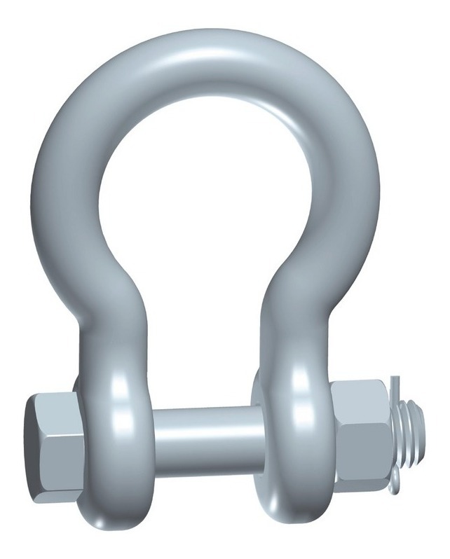 - Corpo: Aço carbono forjado - Pino: Aço ligado - Galvanizado a quente - Fator de segurança: 5x carga de trabalho