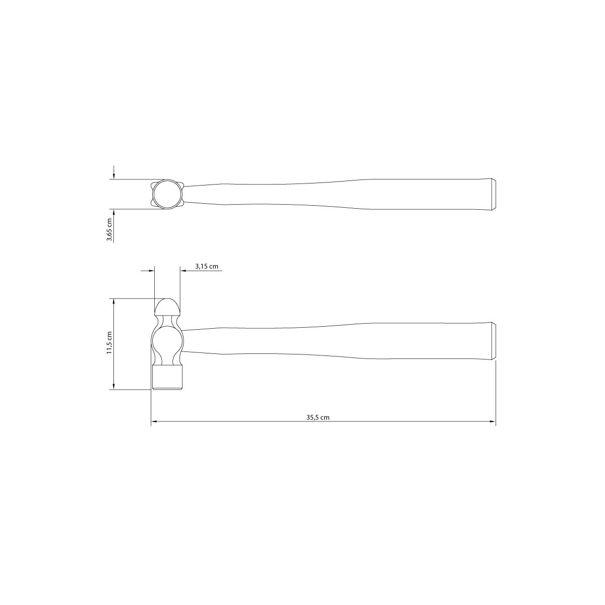 Martelo de bola com cabo de madeira 600 g