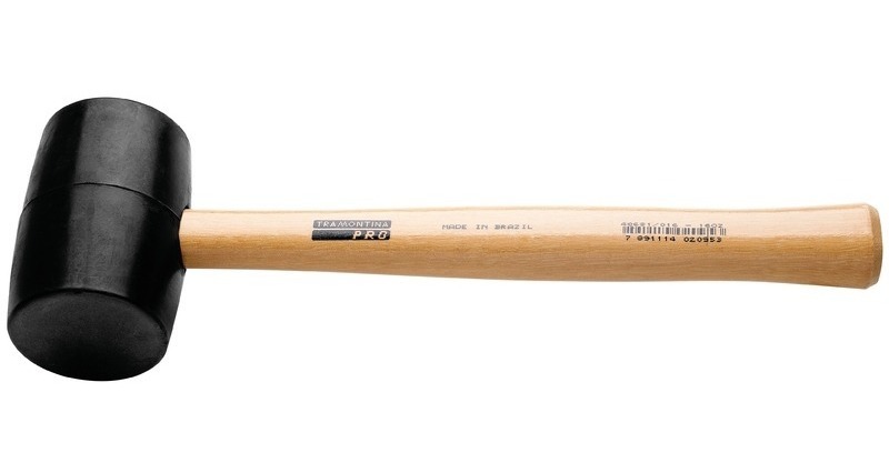 Cabeça de borracha preta. Cabo de madeira autofixável. Utilizados no assentamento de pisos, basaltos, pneus e outros materiais que não podem ser danificados. As ferramentas são produzidas e testadas conforme normas específicas.