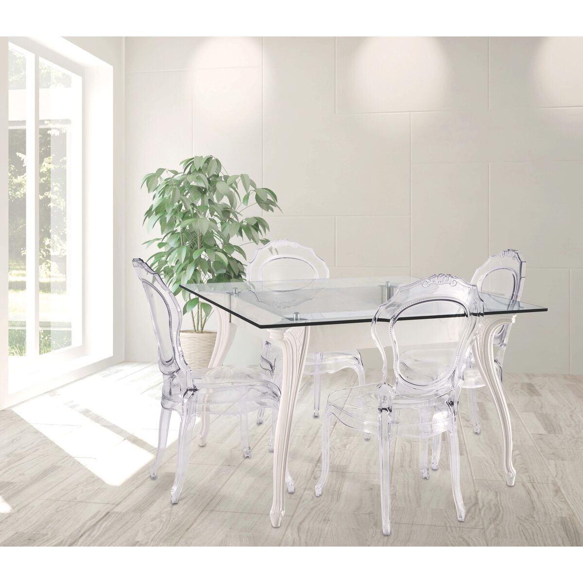 Seguindo a proposta da cadeira Belle Époque, a Tramontina lança a mesa Belle Époque para atender àqueles que prezam por um impacto visual indescritível e buscam pelo clássico e elegante. Pernas feitas em Policarbonato, perfis laqueados ou em PMMA (acrílico) e tampo de vidro. A estrutura da mesa suporta uma carga de 100 kg. Quando usado um tampo com espessura de 12mm a mesa suporta uma carga de 50 kg distribuídos uniformemente . Para limpeza aconselha-se apenas com um pano macio e úmido. Não faça uso de produtos abrasivos tais como solvente, cloro, amoníaco ou outras substâncias abrasivas. Possui 01 ano de garantia. * A mesa é composta por três partes: Pernas, perfis e tampo de vidro.