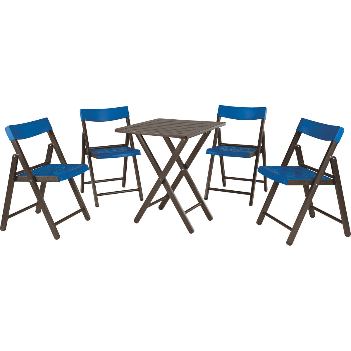 Conjunto Potenza 1 Mesa de Madeira + 4 Cadeiras Tabaco/Plástico Azul