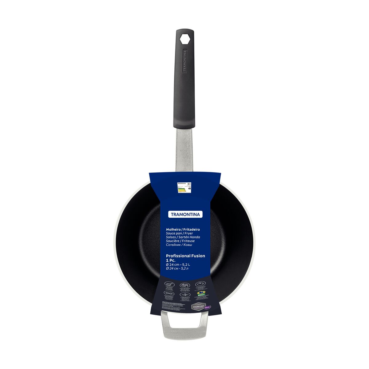 Com a fritadeira molheira Tramontina Profissional em alumínio com revestimento interno em antiaderente Starflon Premium e externo lixado 24 centímetros de diâmetro 5,2 litros é a escolha ideal para quem busca versatilidade e praticidade em sua cozinha. Com altura especial, ela auxilia no preparo de molhos variados e frituras com baixa possibilidade de respingos. Seu corpo é em alumínio com espessura de 3,2 milímetros, que proporciona o cozimento rápido e uniforme dos alimentos. Seu revestimento interno é em antiaderente Starflon Premium, material que não gruda e é muito fácil de limpar. Na parte externa ela é lixada e conta com alça e cabo de aço inox, onde este último, conta com cabo com luva de silicone removível, que garante maior proteção contra o calor. Escolha Tramontina e complete a cozinha do seu restaurante ou cantina!