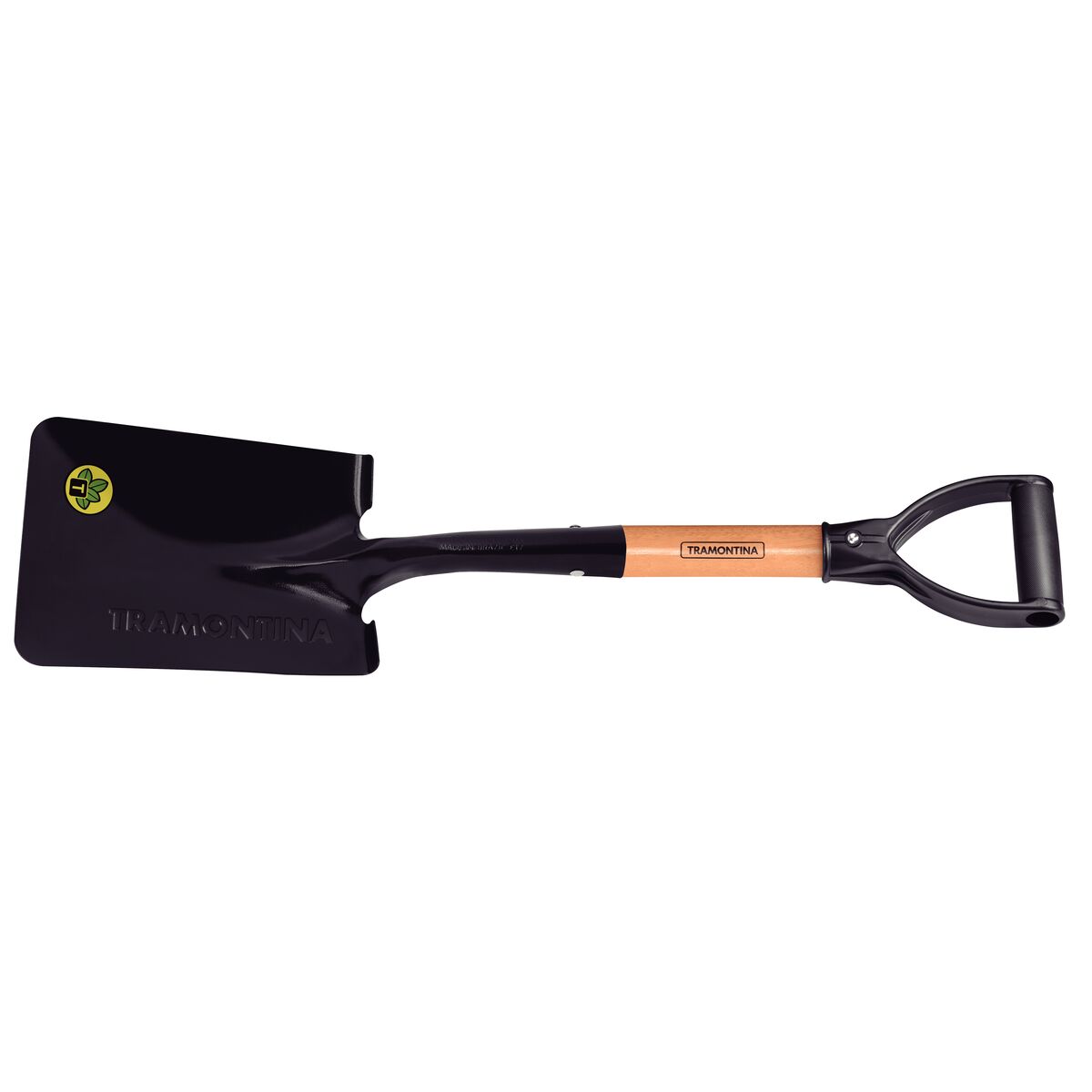 Pá Quadrada Pequena Tramontina em Aço com Cabo de Madeira 45 cm com Empunhadura Plástica Reta Ergonômica