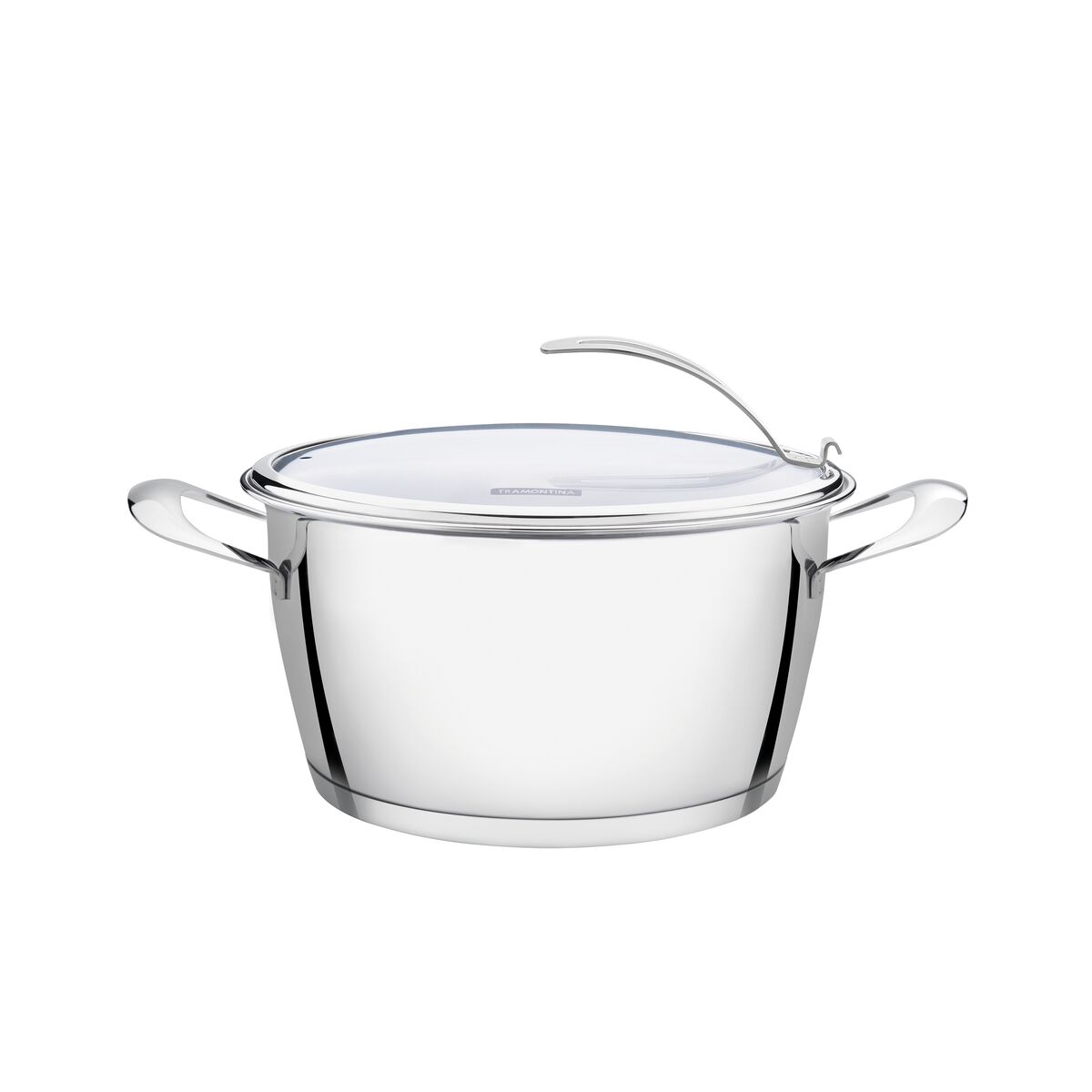 - De aço inox, por isso não solta nenhum resíduo nos alimentos, mantendo-os saudáveis. - Altamente durável, mantém suas características originais, preservando a beleza, a higiene e a durabilidade do material. - O fundo triplo (aço inox + alumínio + aço inox) distribui o calor uniformemente, proporcionando um cozimento mais rápido e uniforme, economizando energia e deixando os alimentos aquecidos por mais tempo. - Com tampa de vidro que pode ser apoiada na borda da caçarola, fazendo com que o vapor condensado na tampa escorra para dentro da caçarola. - Design diferenciado e moderno, com acabamento em alto brilho. - Tampa de vidro com saída de vapor e encaixe perfeito. - Pode ser lavada diariamente na máquina de lavar louças. - Pode ser utilizado nos fogões: gás, elétrico, vitrocerâmico e indução.
