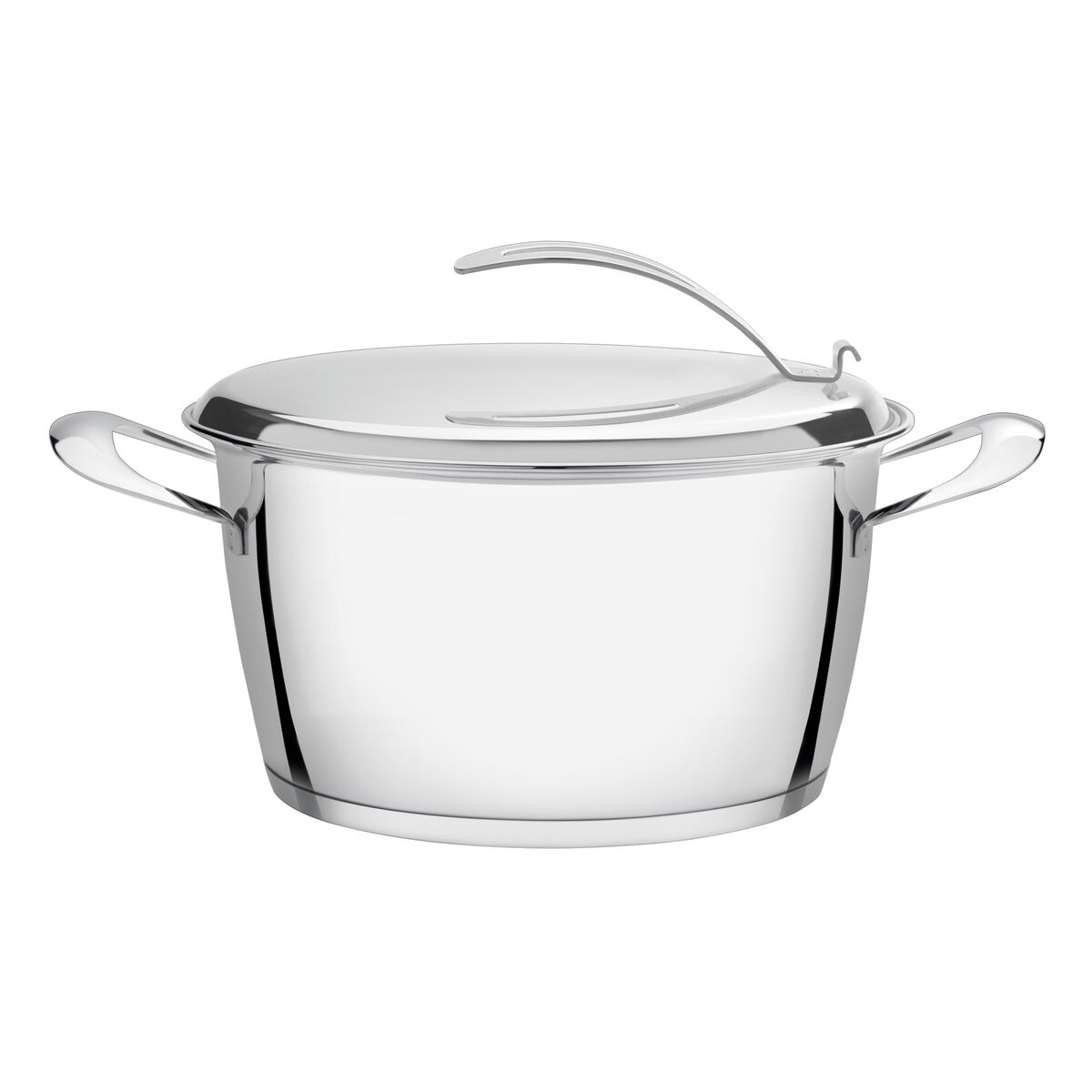 - Totalmente feita de aço inox, por isso não solta nenhum resíduo nos alimentos, mantendo-os saudáveis. - Altamente duráveis, mantêm as características originais, preservando a beleza, a higiene e a durabilidade do material. - O fundo triplo (aço inox + alumínio + aço inox) distribui o calor uniformemente, proporcionando um cozimento mais rápido e uniforme, economizando energia e deixando os alimentos aquecidos por mais tempo. - Pode ir ao forno para gratinar ou finalizar pratos, na temperatura máxima de 260°C. - A tampa pode ser apoiada na borda da panela, fazendo com que o vapor condensado na tampa escorra para dentro da panela. - Design diferenciado e moderno, com acabamento em alto brilho. - Possui tampa com saída de vapor e encaixe perfeito. - Pode ser lavada diariamente na máquina de lavar louças. - Pode ser utilizada nos fogões: gás, elétrico, vitrocerâmico e indução.