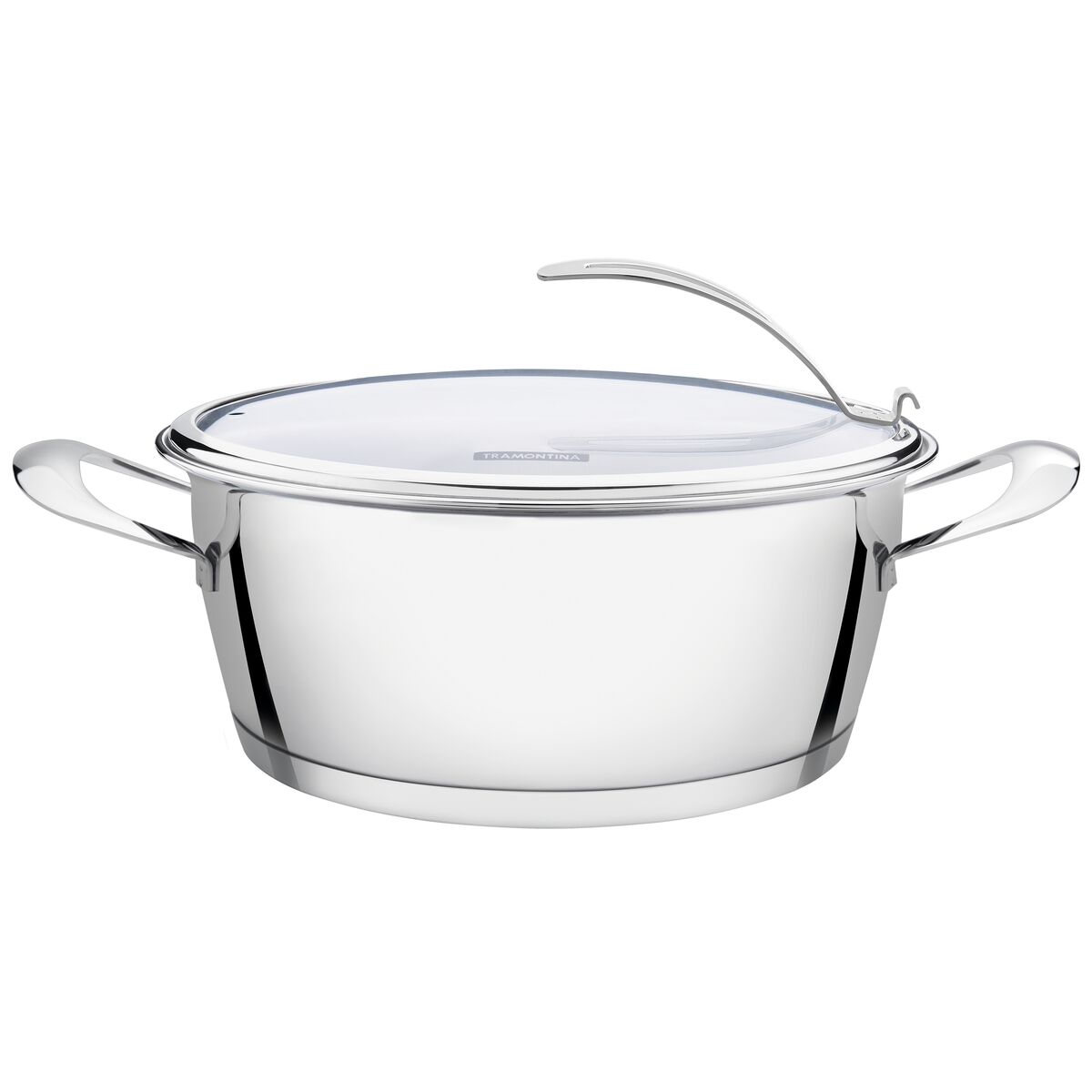 Caçarola Rasa Tramontina Ventura em Aço Inox com Fundo Triplo e Tampa de Vidro 24 cm 4,2 L